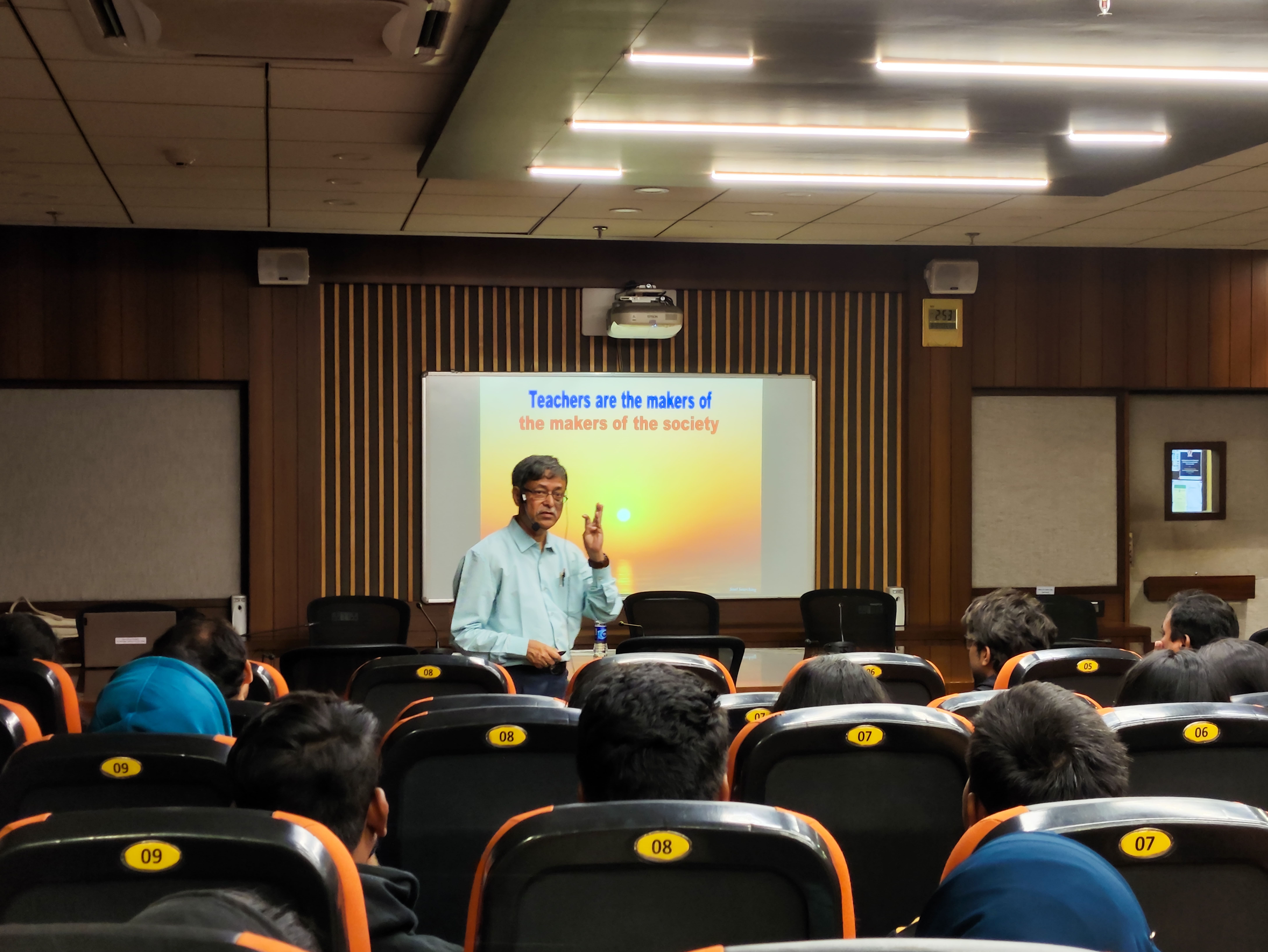 Prof. Chattopadhyay delivered lecture on “Attitude of Learning and Teaching”. He discussed about the Curiosity and Open-mindedness for learners and patience and flexibility for teachers. He also put emphasis on self-reflection, encouragement and positive reinforcement, respect, and trust for both the learners and teachers. The attitudes of learning and teaching significantly shape the overall educational experience. Positive attitudes lead to more engaged, motivated learners and more responsive, effective teaching. Fostering an environment that encourages curiosity, empathy, patience, and reflection benefits everyone in the educational process. The lecture session was followed by the question answer session. Students and teachers were very much enlightened by this inspiring lecture of Professor Nitin Chattopadhyay. The session ended with the vote of thanks by Ms. Anamika Guha of the Department of Computer Science.
