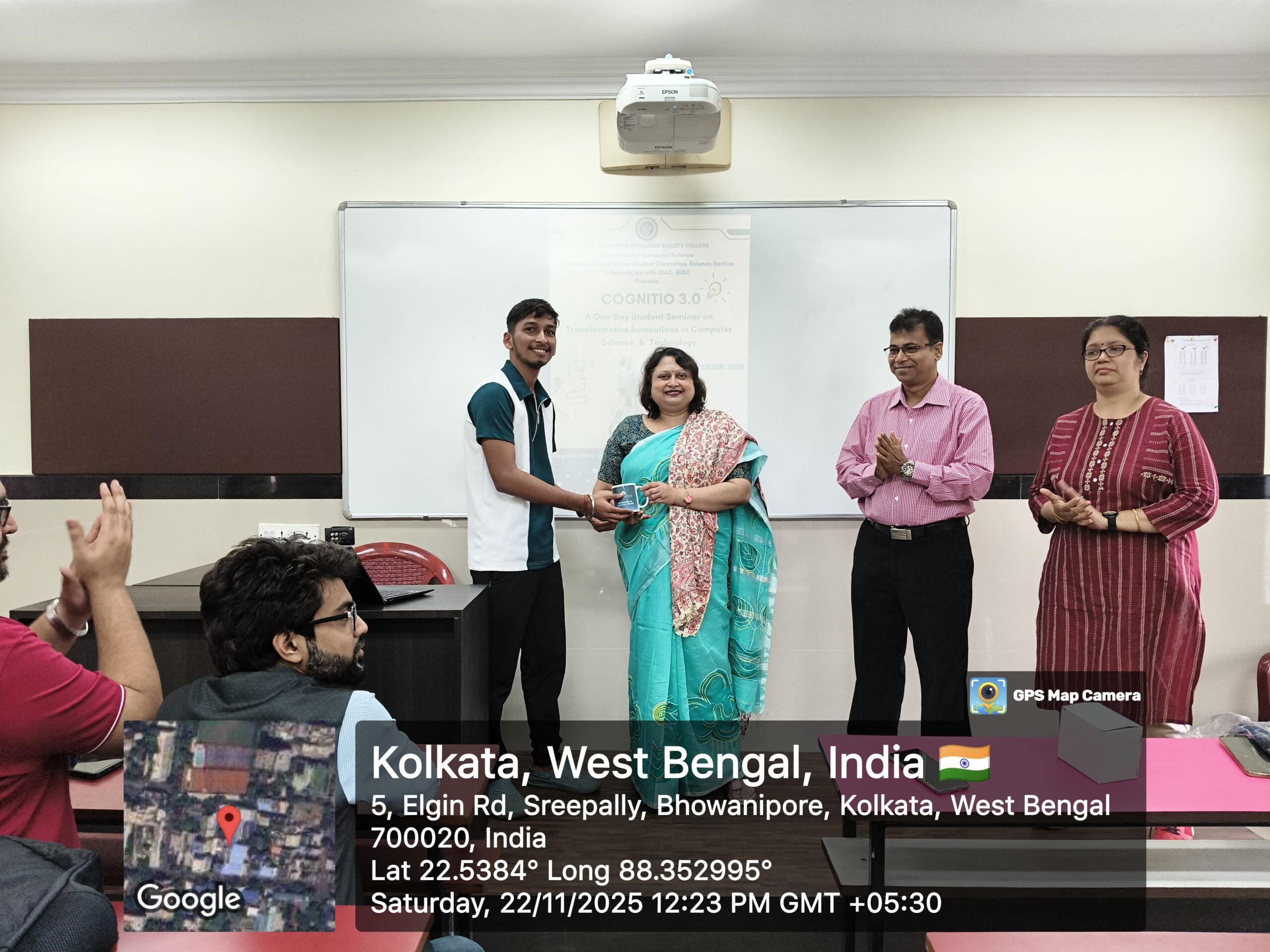 Name of the Event: Cognitio 3.0 Type of Event: One-Day Peer-Student Seminar on Transformative Innovations in Computer Science and Technology Organised By: Department of Computer Science in collaboration with Peer-Student Committee, Science Section and in association with IQAC, BESC Time: 11:00 AM – 1:00 PM Resource Person: Mr. Krishna Jain (Sem 5 student) Number of Participants: Faculty: 07 & Students: 23