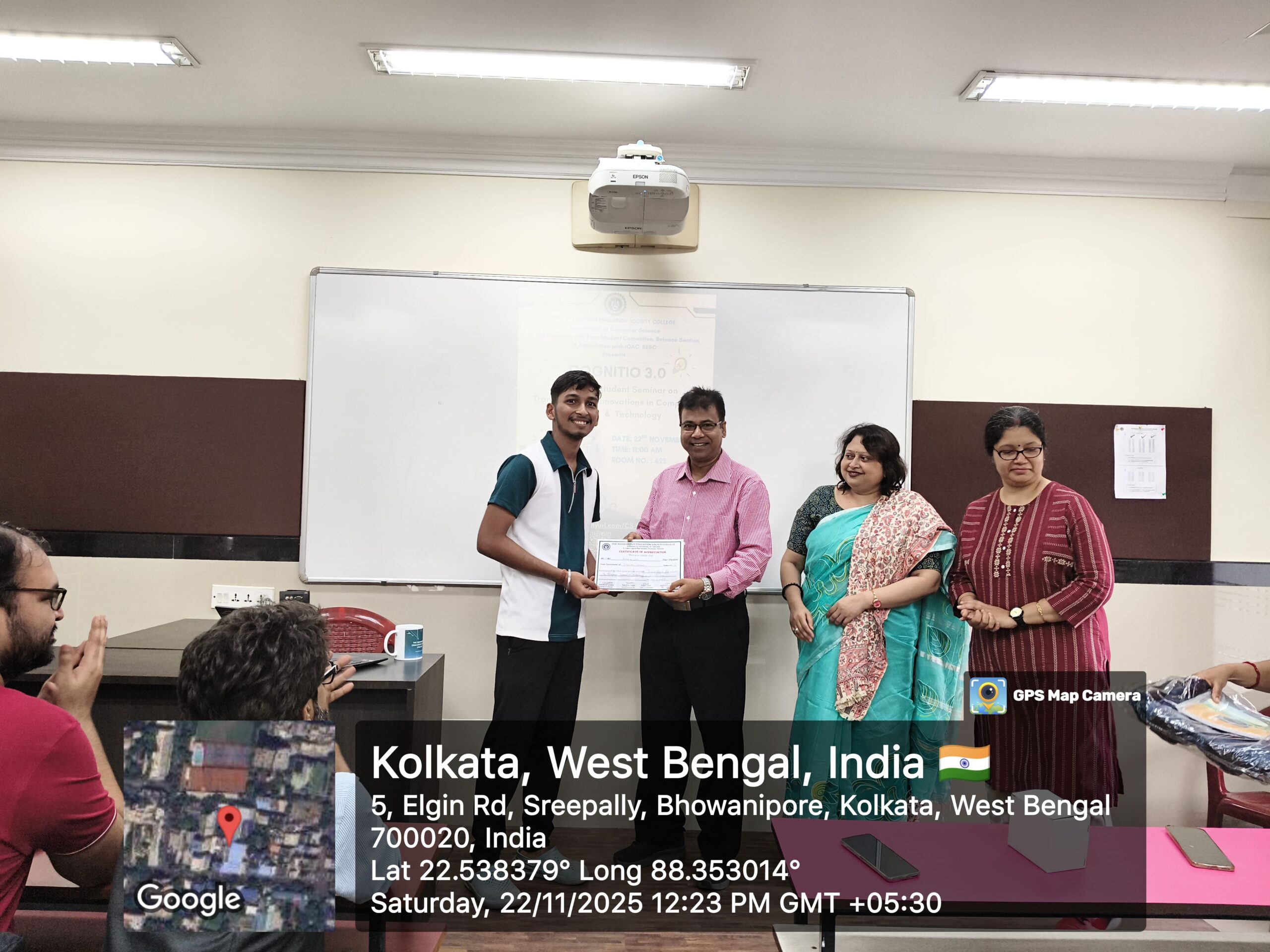 Brief Description: The seminar, held in Room 422 at 11:00 AM, commenced with an introduction by one of the convenors, Ms. Anamika Guha. This was followed by an outstanding presentation by Mr. Krishna Jain, a Semester 5 student of the department. Krishna presented an impressive and innovative application that he had developed after thoroughly studying the issues students commonly face in the college canteen. He identified key challenges – most notably the long waiting times, crowd management, and the absence of a streamlined system for placing and tracking orders. During his presentation, Krishna clearly explained how his solution addresses these problems by offering a more organized, user-friendly, and time-saving process for both students and canteen staff. His ability to break down the problem, propose a practical technological remedy, and demonstrate its real-world usefulness earned him widespread appreciation. The clarity of his explanation, the creativity behind the design, and the strong relevance of the app to everyday campus life made his presentation stand out as an excellent example of how technology can effectively improve institutional operations.