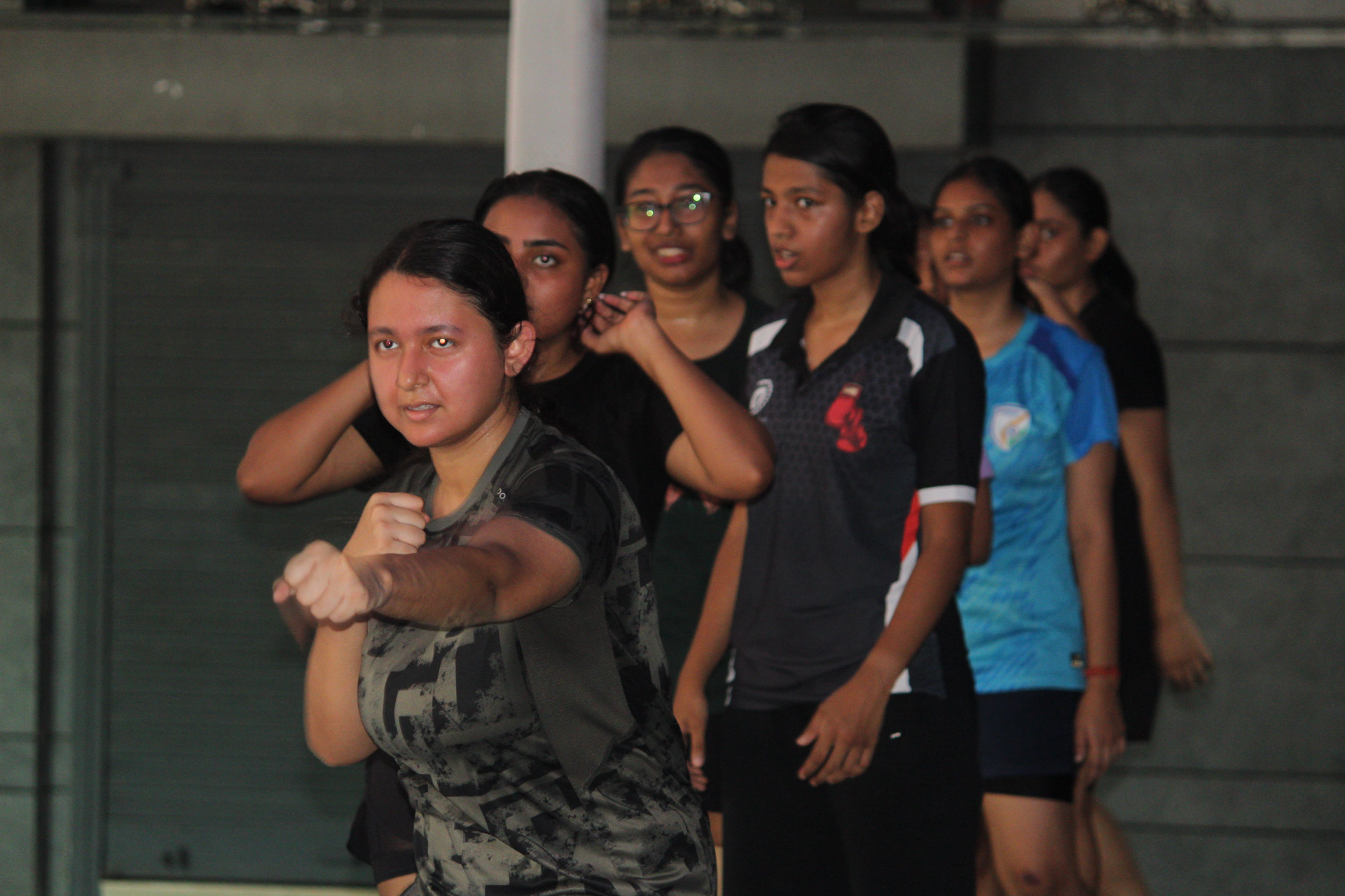 The Rector and Dean of Student Affairs, Prof. Dilip Shah, supervised the workshop and clicked a group photograph with the team as a memento. The event was a great success, where the young athletes learned a lot about kickboxing and self-defence, with many students inspired to pursue kickboxing further.