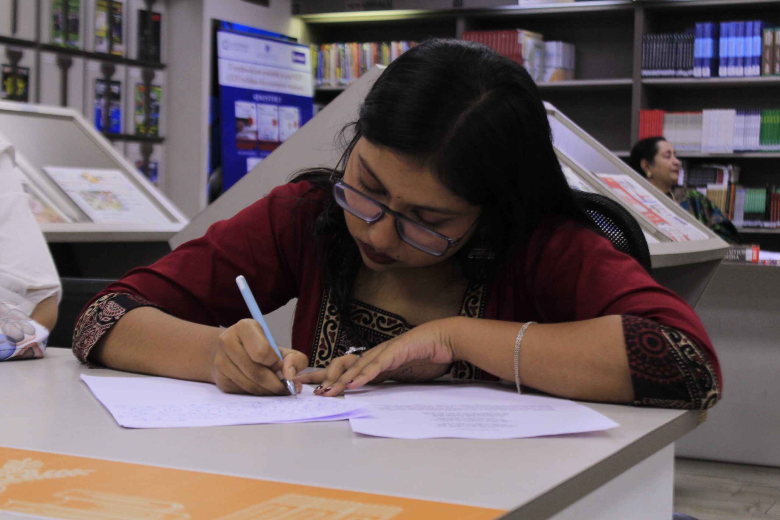 Wordlets: Wordlets was the Micro-fiction event that took place from 11:00 A.M. to 12:00 P.M. in the Knowledge Adda, with sixteen participants. The event challenged the participants to capture a whole world in just a handful of words and was judged by Suhasini Burman, marketer, author, educator, and founder of SB & Co. and Zero Line Digital. Participants were given four prompts on the spot, which included “Love arrived too late or too early,” “The elevator stops, and you meet someone unexpected,” “A habit you thought harmless has consequences tonight,” and “A small lie leads to a big surprise tonight.” The participants had to choose one of the four topics, and, with only fifteen minutes to craft their entries either in English or Hindi, they had to prove that the smallest expressions can leave the deepest impact. Originality was the key; plagiarism meant instant disqualification, and the writers had to channel creativity while ensuring brevity. The Bhawanipur Education Society College (OTSE Team) once again rose as the winner of Wordlets, whereas second and third positions were awarded to MCKVIE (OTSE Team) and St. Xavier’s Autonomous College, respectively.