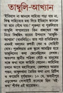 Ei Samay, features coverage of The Book Talk on Tambuli Akhyan organized by the Department of Bengali at The Bhawanipur Education Society College on 10th May, 2025.