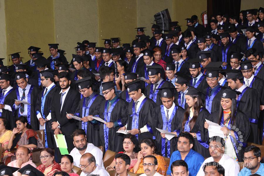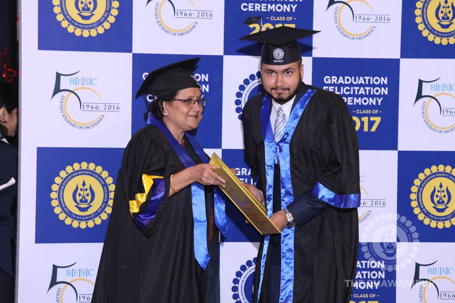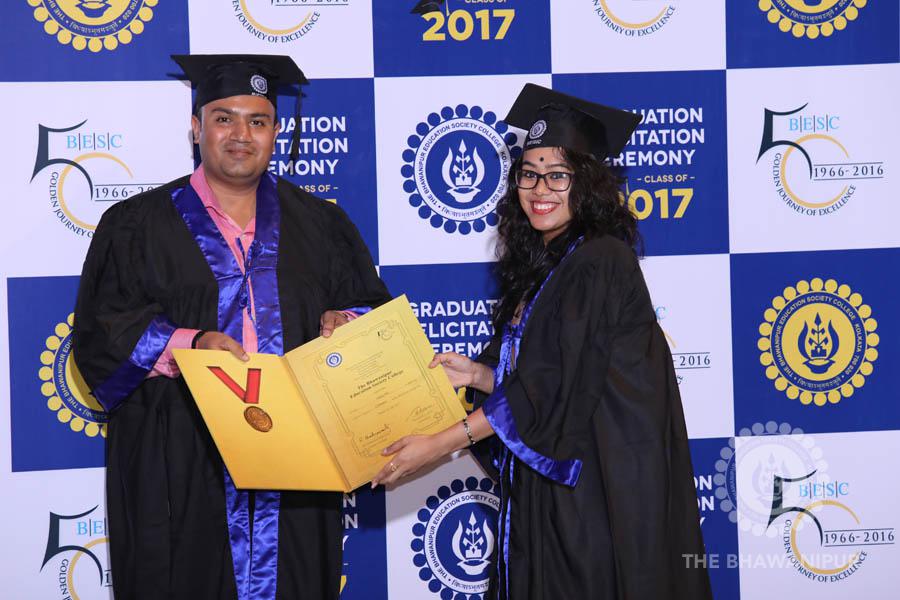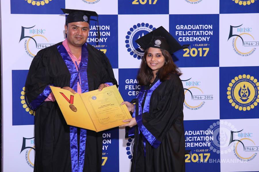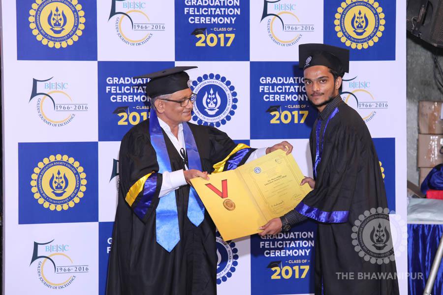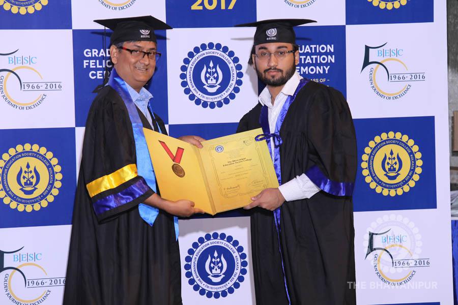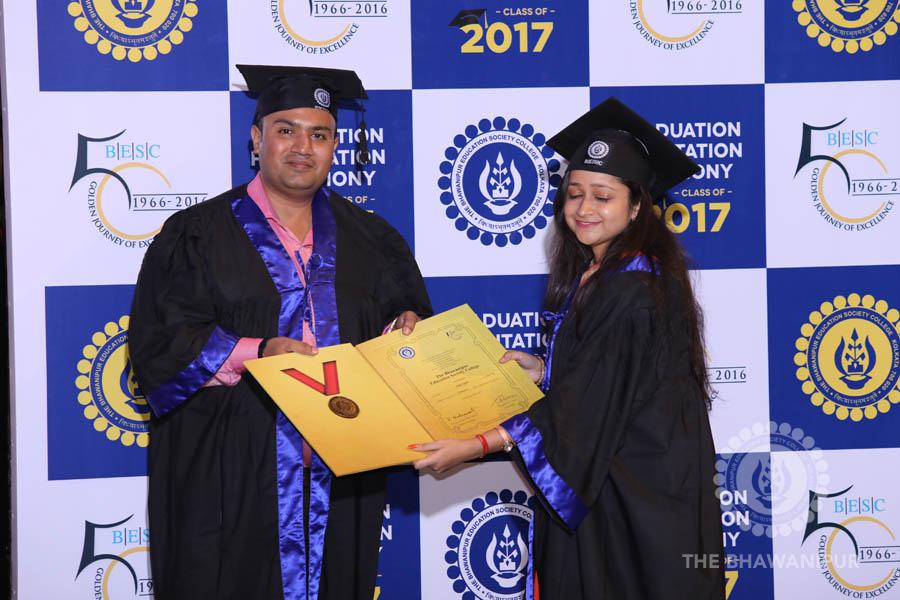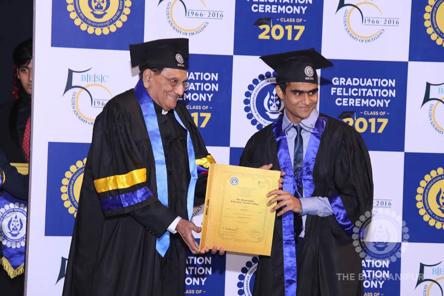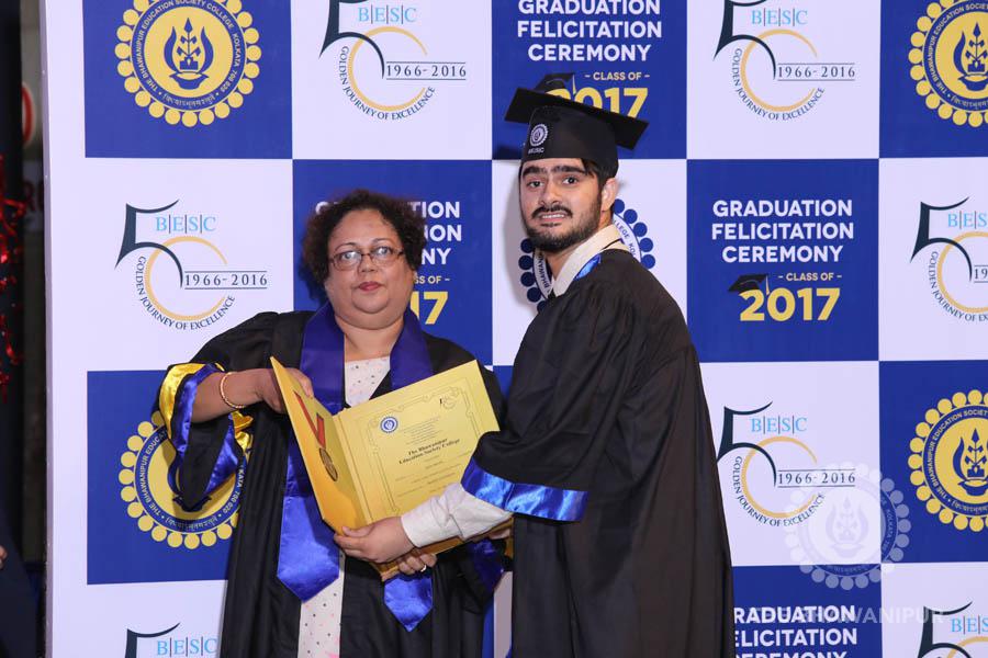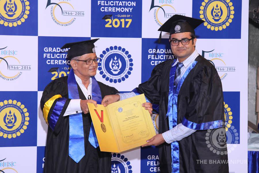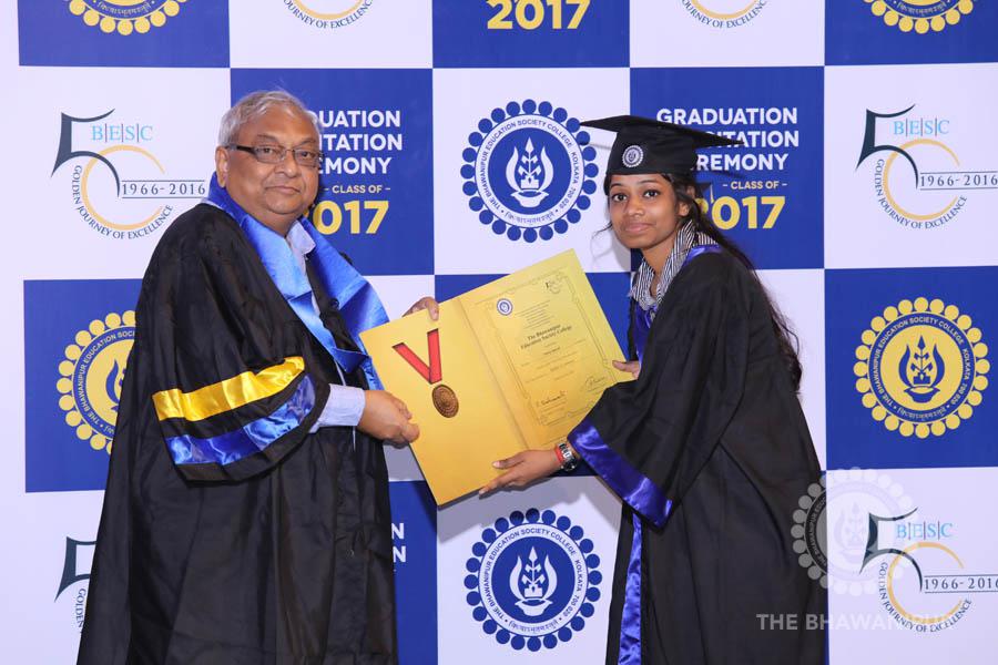 Gurudev Rabindra Nath Tagore’s immortal lines “Where the Mind is without Fear” played in the background as the Convocation procession – comprising of the Chairman of the Bhawanipur Education Society College, Champak Bhai Doshi; the Chief Guest Chetan Bhagat; the Vice Chairman Miraj D Shah; the Director General Prof Suman K Mukherjee; the Dean of Student Affairs Prof Dilip Shah; the Rector; the Teacher in Charge and senior members of the faculty moved on stage in full ceremonial regalia. The Guests were welcomed and the Ceremonial Lamp of Knowledge ignited to formally begin the proceedings of the solemn occasion – the Convocation of the Class of 2017.