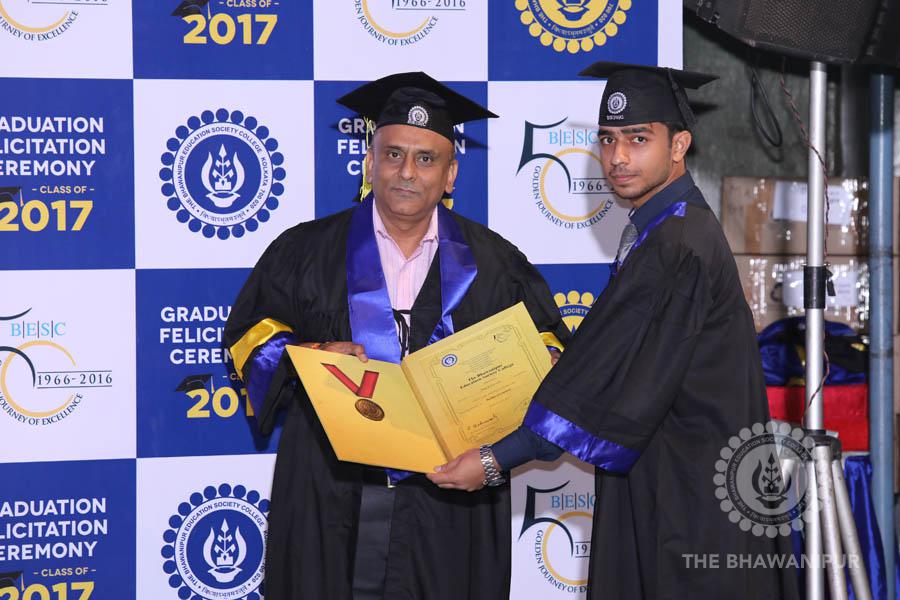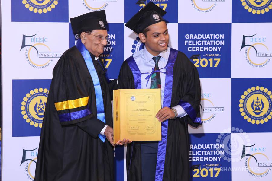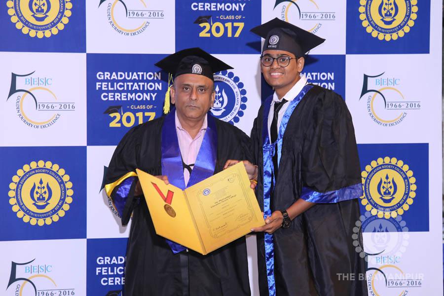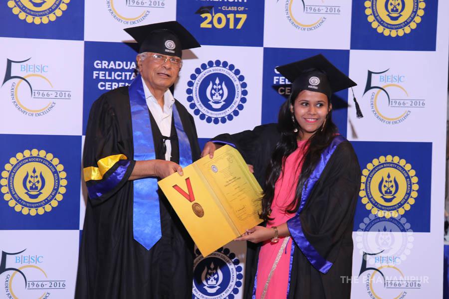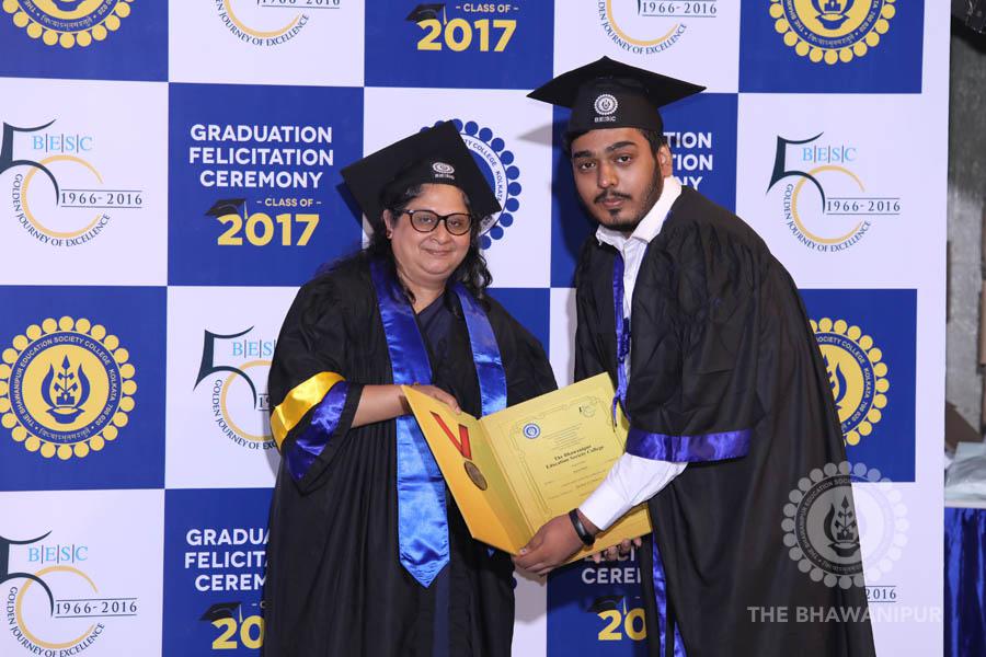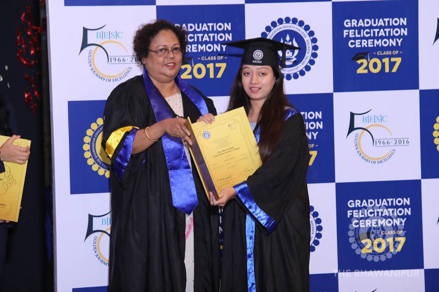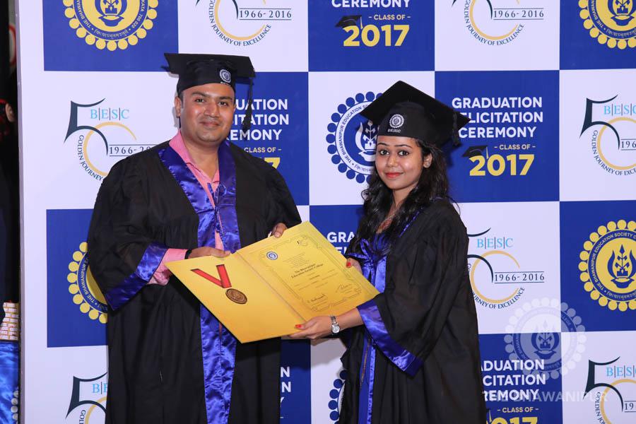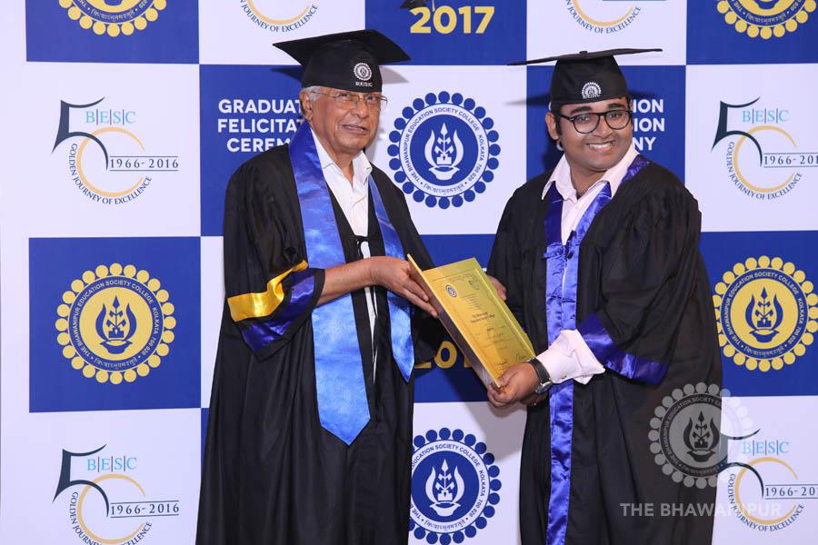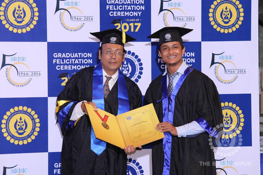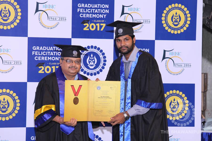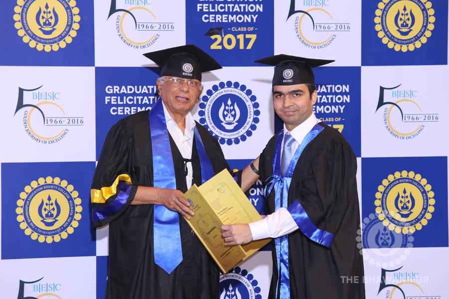 Gurudev Rabindra Nath Tagore’s immortal lines “Where the Mind is without Fear” played in the background as the Convocation procession – comprising of the Chairman of the Bhawanipur Education Society College, Champak Bhai Doshi; the Chief Guest Chetan Bhagat; the Vice Chairman Miraj D Shah; the Director General Prof Suman K Mukherjee; the Dean of Student Affairs Prof Dilip Shah; the Rector; the Teacher in Charge and senior members of the faculty moved on stage in full ceremonial regalia. The Guests were welcomed and the Ceremonial Lamp of Knowledge ignited to formally begin the proceedings of the solemn occasion – the Convocation of the Class of 2017.