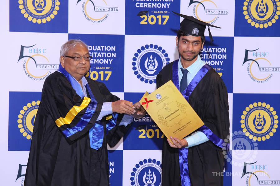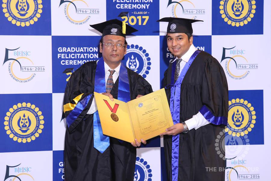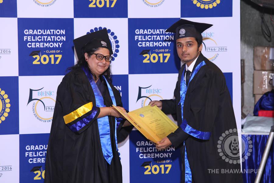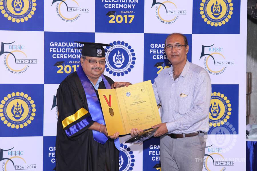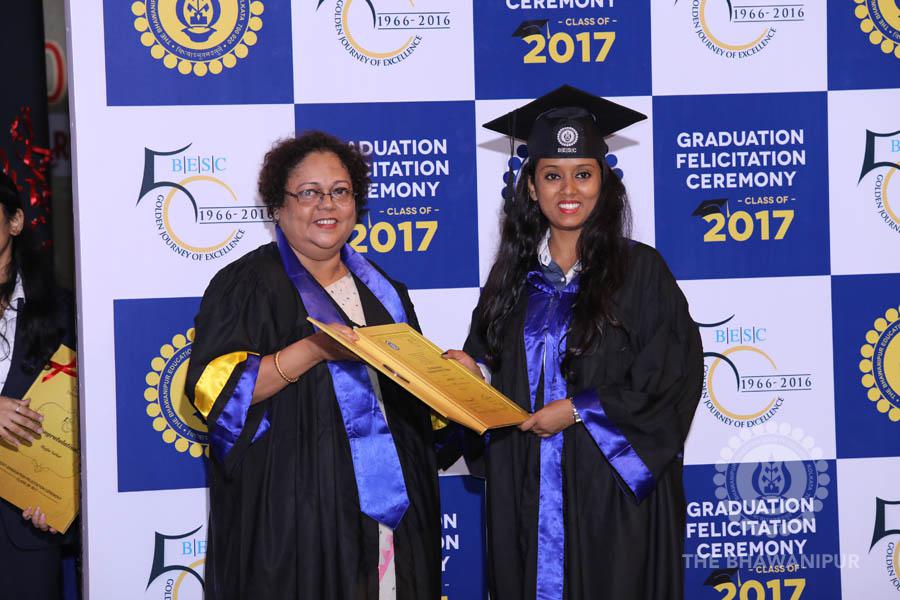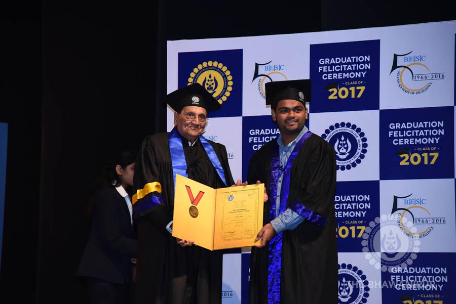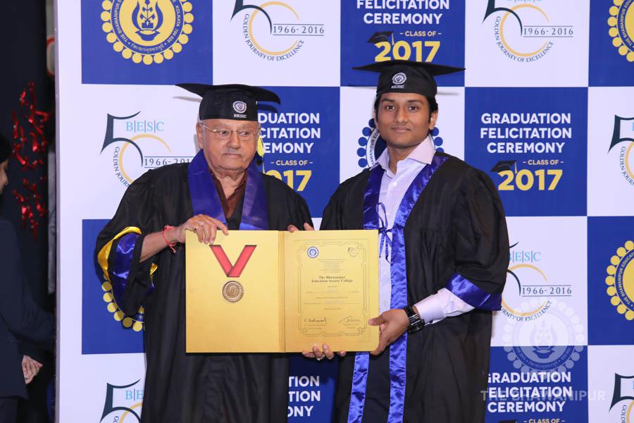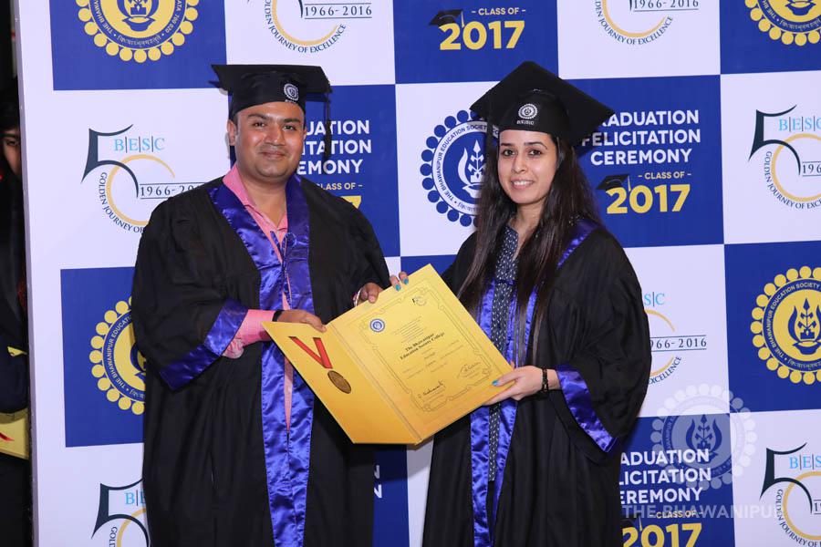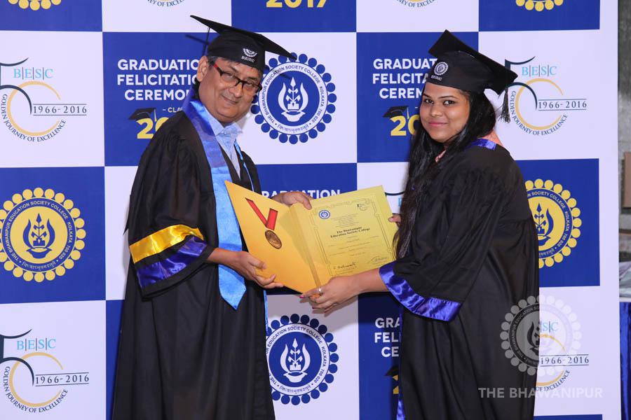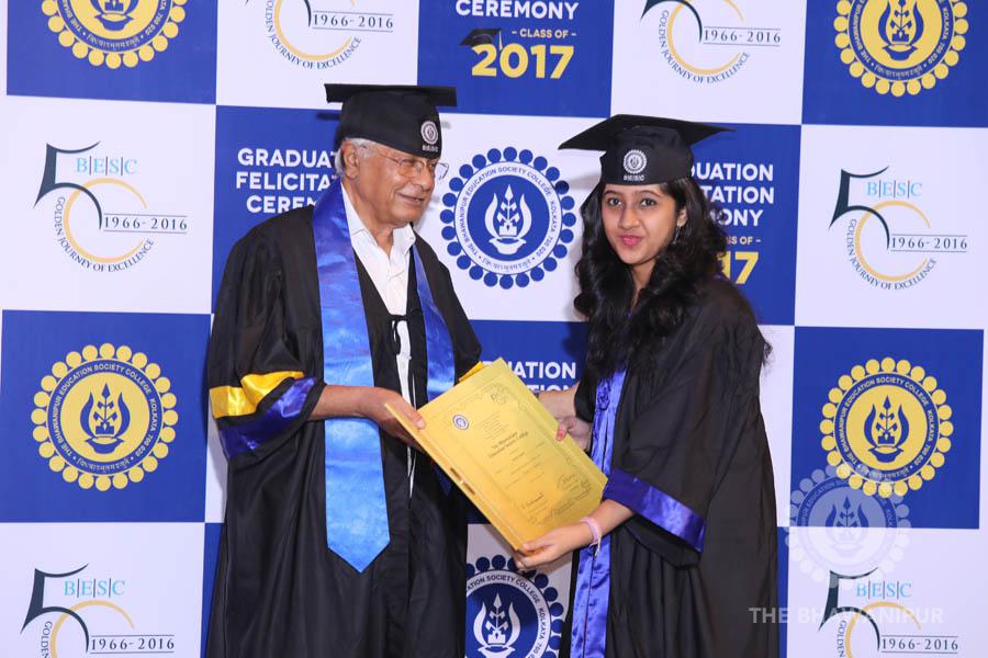 Gurudev Rabindra Nath Tagore’s immortal lines “Where the Mind is without Fear” played in the background as the Convocation procession – comprising of the Chairman of the Bhawanipur Education Society College, Champak Bhai Doshi; the Chief Guest Chetan Bhagat; the Vice Chairman Miraj D Shah; the Director General Prof Suman K Mukherjee; the Dean of Student Affairs Prof Dilip Shah; the Rector; the Teacher in Charge and senior members of the faculty moved on stage in full ceremonial regalia. The Guests were welcomed and the Ceremonial Lamp of Knowledge ignited to formally begin the proceedings of the solemn occasion – the Convocation of the Class of 2017.