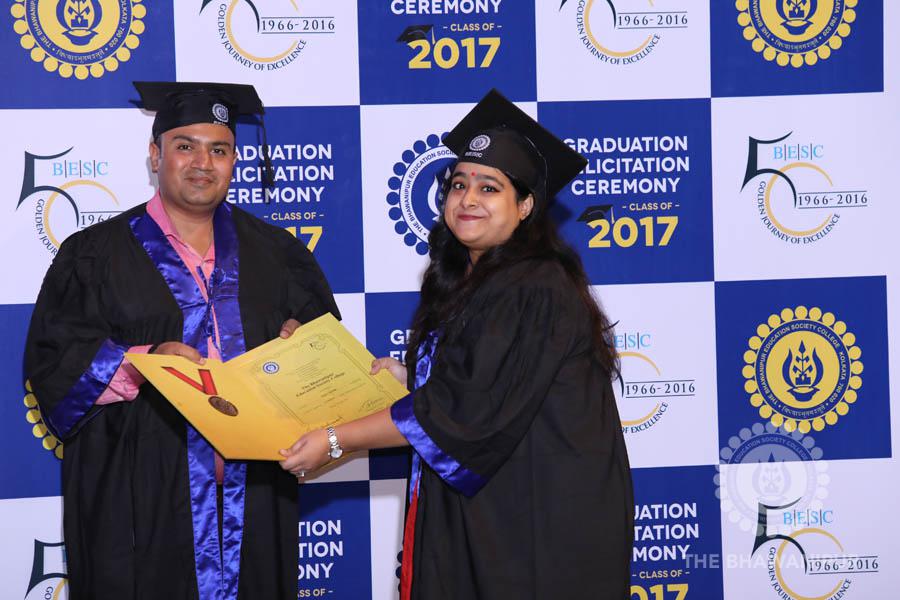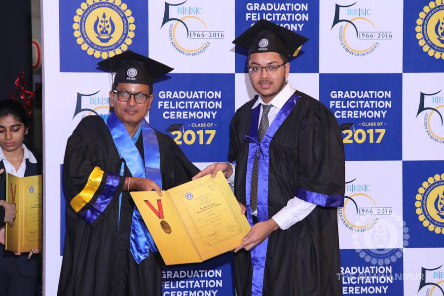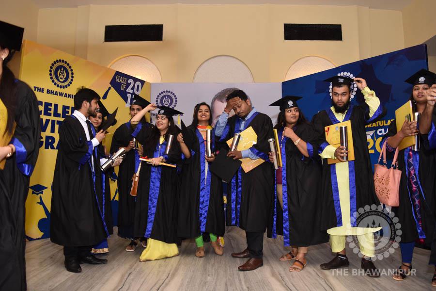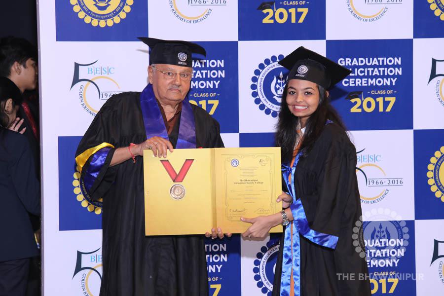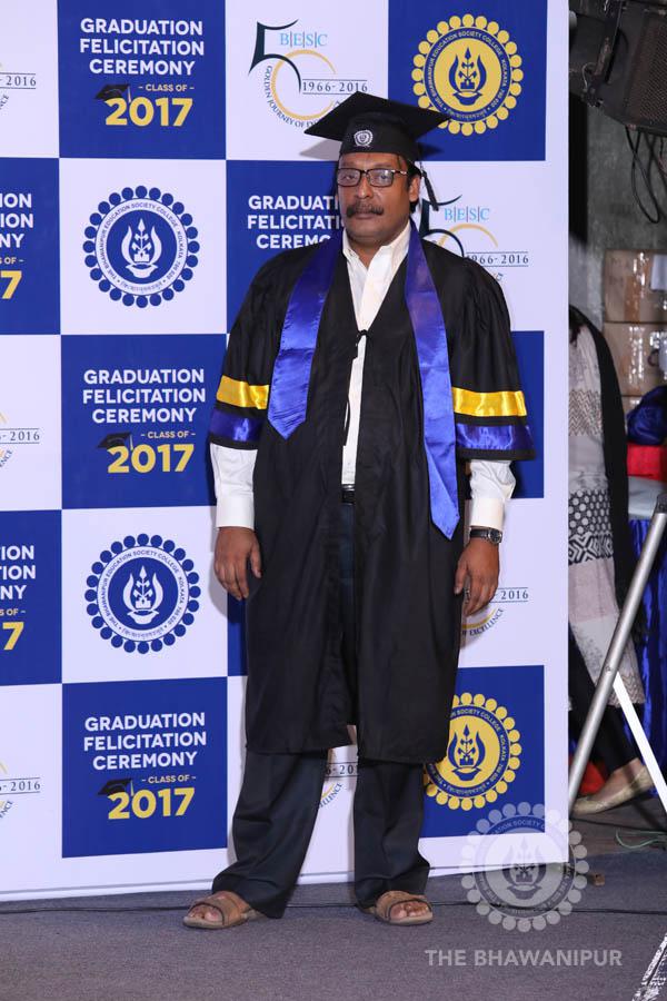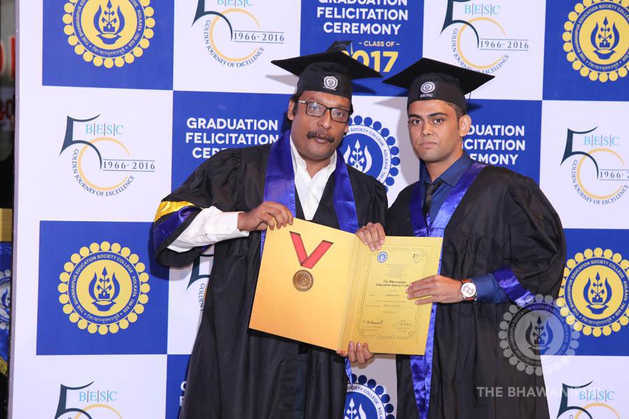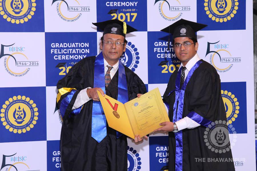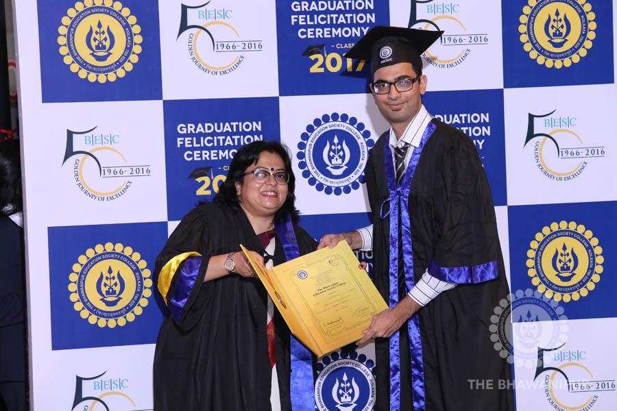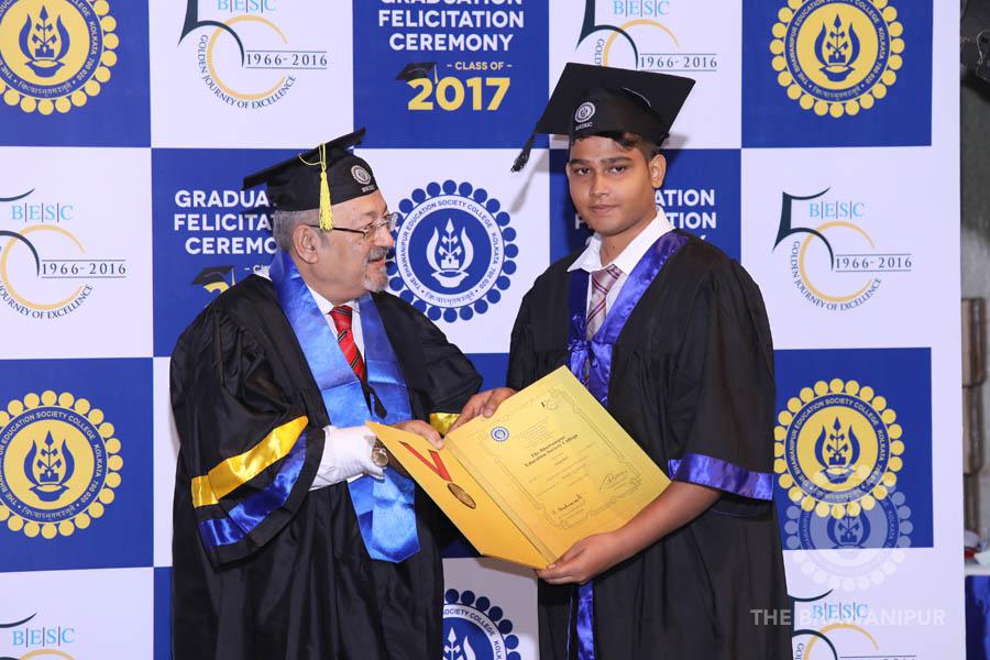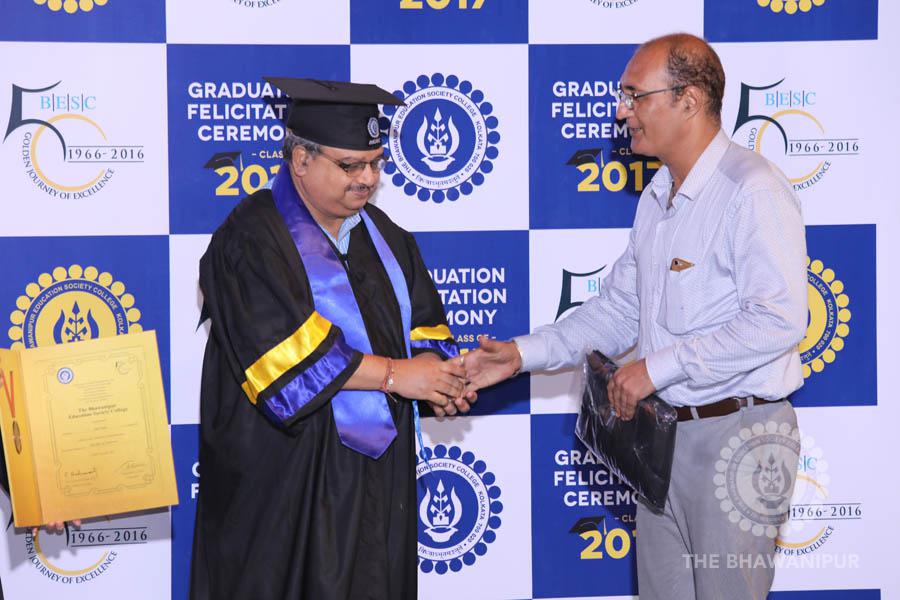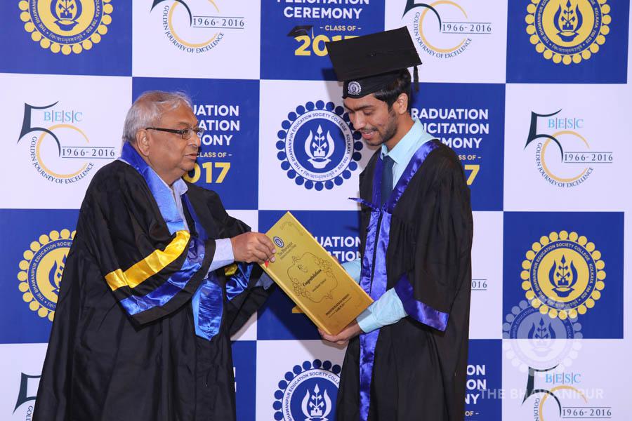 Gurudev Rabindra Nath Tagore’s immortal lines “Where the Mind is without Fear” played in the background as the Convocation procession – comprising of the Chairman of the Bhawanipur Education Society College, Champak Bhai Doshi; the Chief Guest Chetan Bhagat; the Vice Chairman Miraj D Shah; the Director General Prof Suman K Mukherjee; the Dean of Student Affairs Prof Dilip Shah; the Rector; the Teacher in Charge and senior members of the faculty moved on stage in full ceremonial regalia. The Guests were welcomed and the Ceremonial Lamp of Knowledge ignited to formally begin the proceedings of the solemn occasion – the Convocation of the Class of 2017.