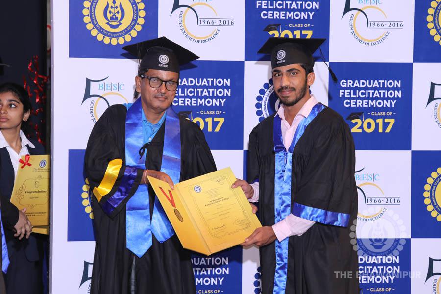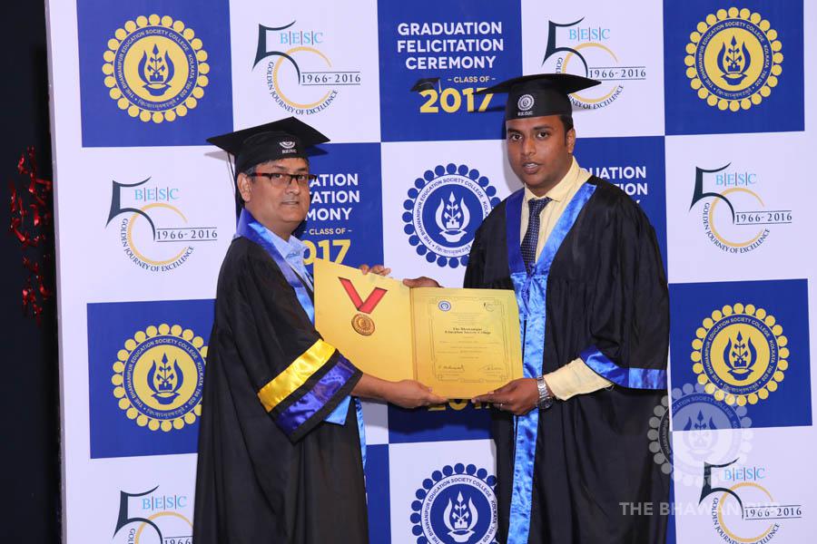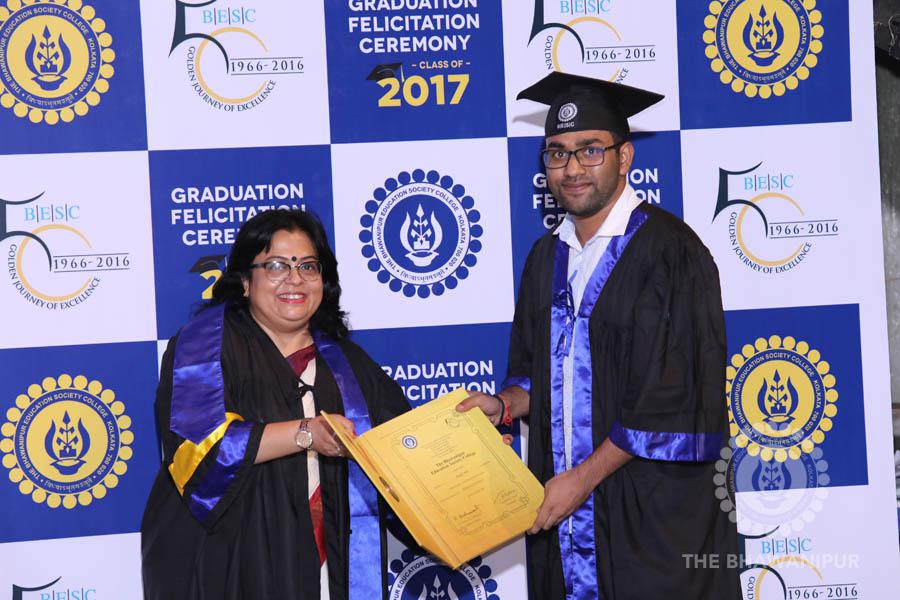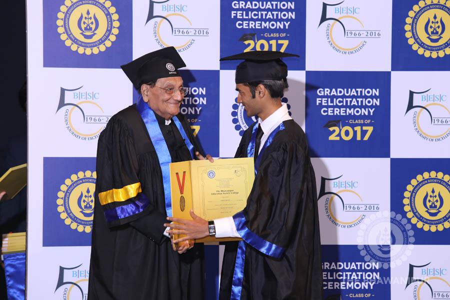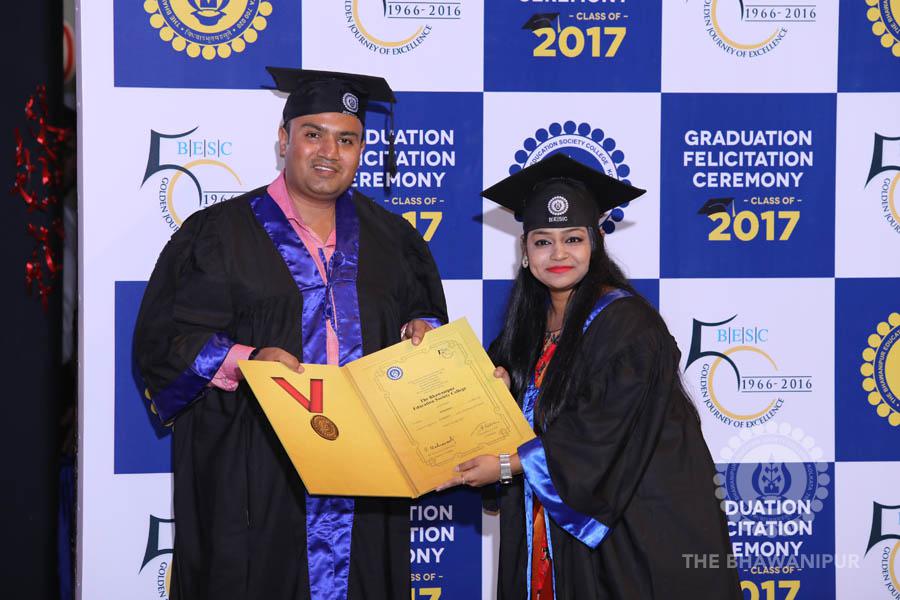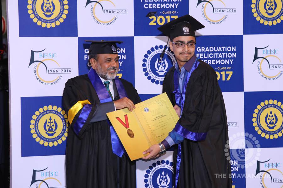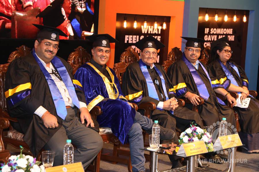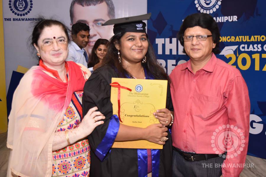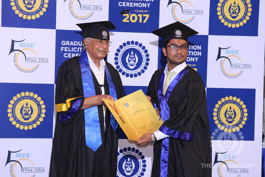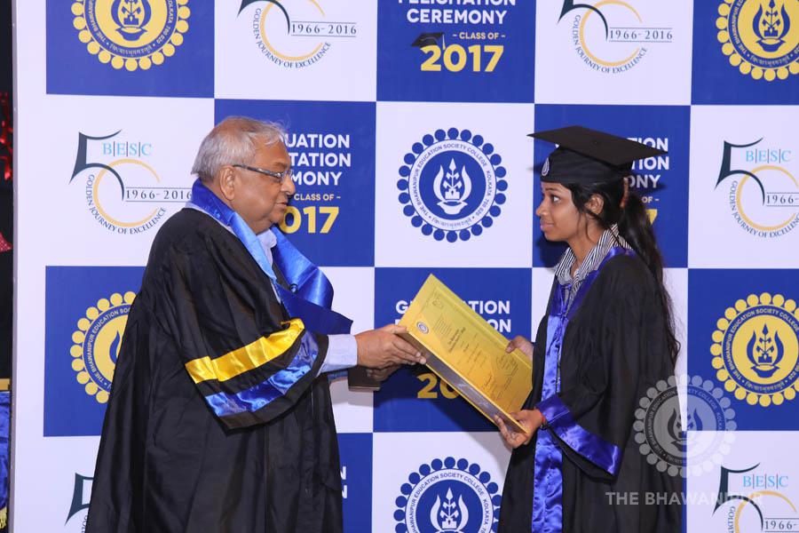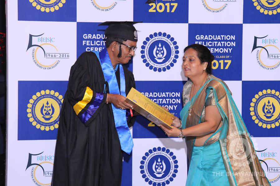 Gurudev Rabindra Nath Tagore’s immortal lines “Where the Mind is without Fear” played in the background as the Convocation procession – comprising of the Chairman of the Bhawanipur Education Society College, Champak Bhai Doshi; the Chief Guest Chetan Bhagat; the Vice Chairman Miraj D Shah; the Director General Prof Suman K Mukherjee; the Dean of Student Affairs Prof Dilip Shah; the Rector; the Teacher in Charge and senior members of the faculty moved on stage in full ceremonial regalia. The Guests were welcomed and the Ceremonial Lamp of Knowledge ignited to formally begin the proceedings of the solemn occasion – the Convocation of the Class of 2017.