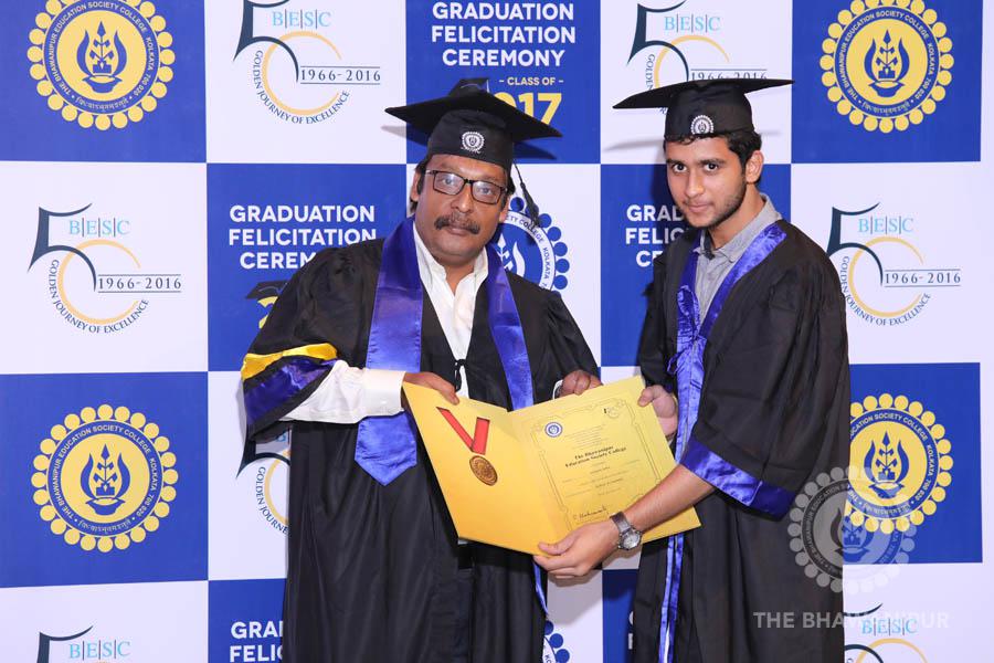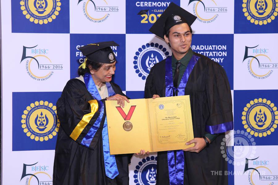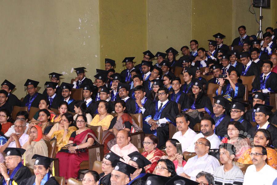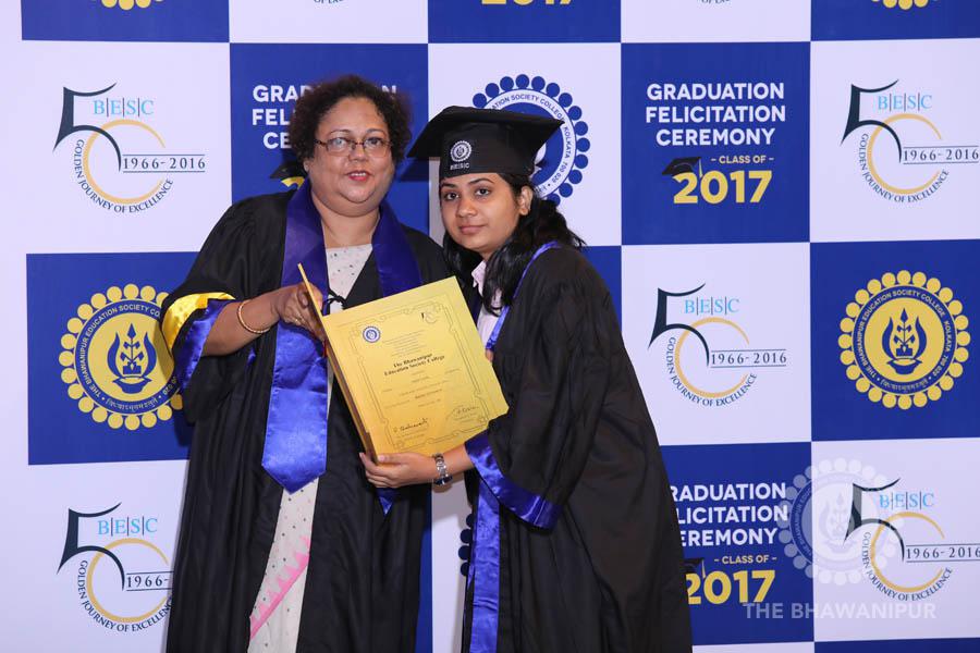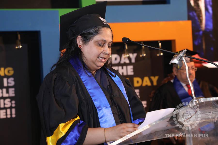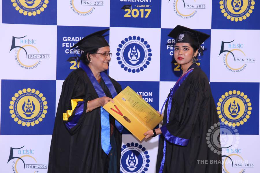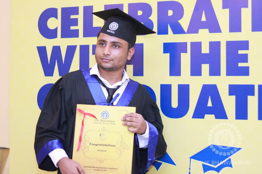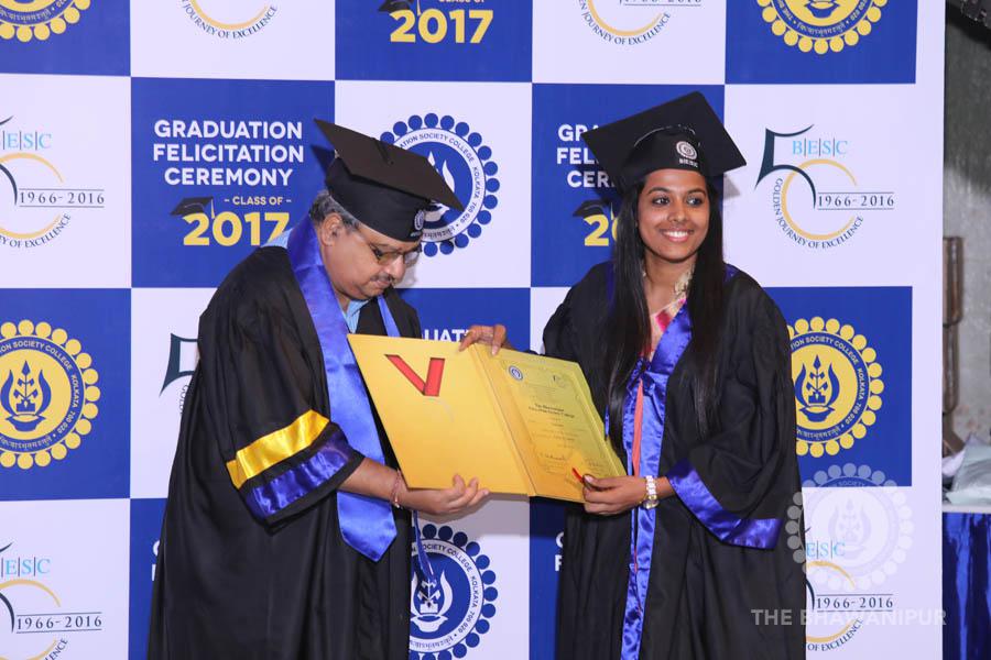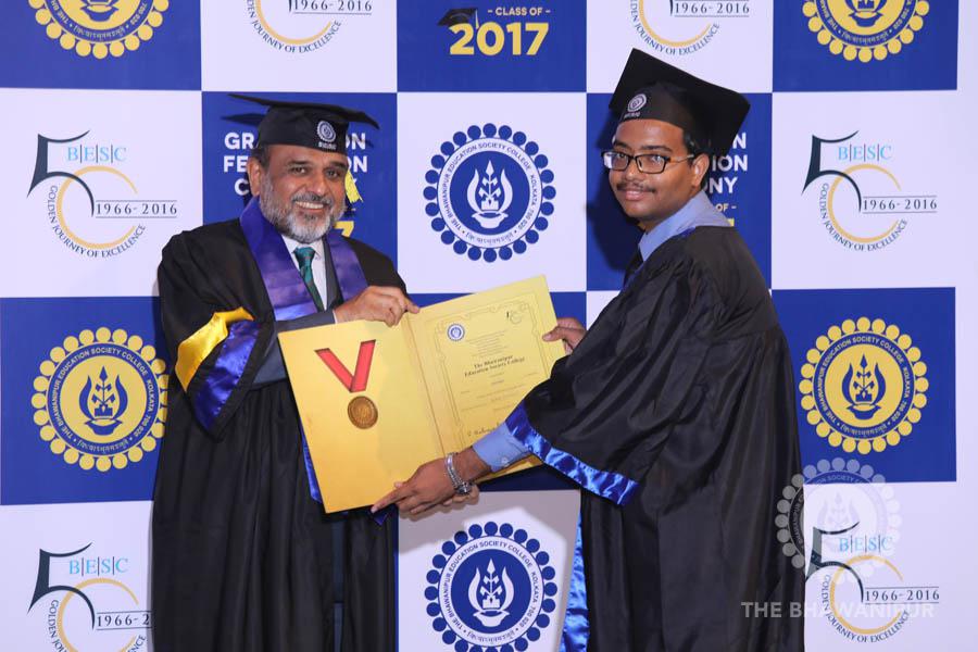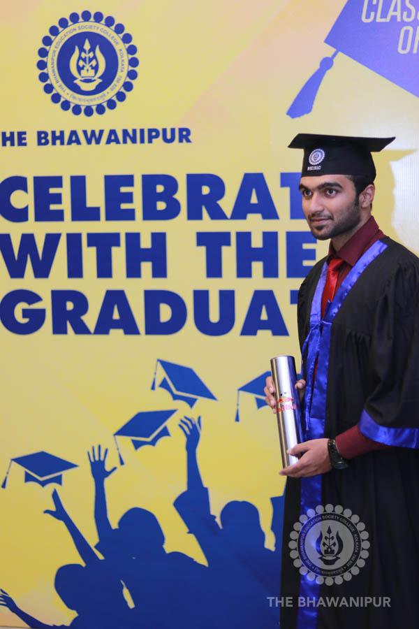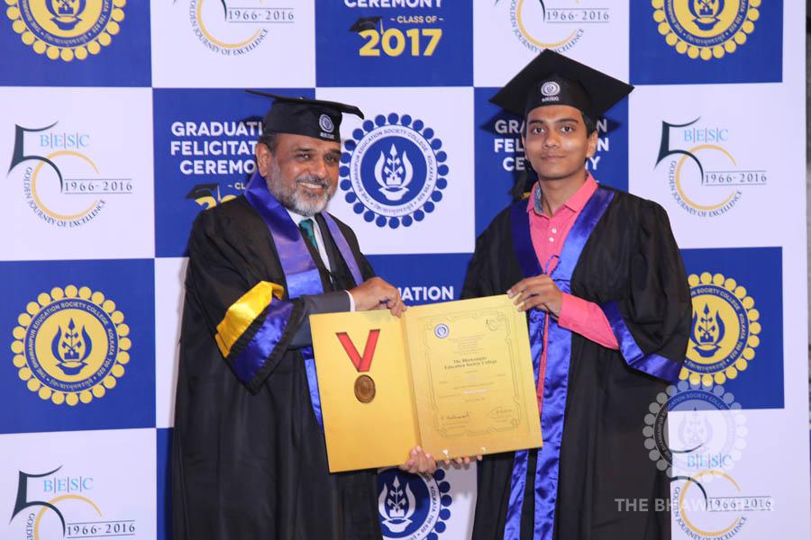 Gurudev Rabindra Nath Tagore’s immortal lines “Where the Mind is without Fear” played in the background as the Convocation procession – comprising of the Chairman of the Bhawanipur Education Society College, Champak Bhai Doshi; the Chief Guest Chetan Bhagat; the Vice Chairman Miraj D Shah; the Director General Prof Suman K Mukherjee; the Dean of Student Affairs Prof Dilip Shah; the Rector; the Teacher in Charge and senior members of the faculty moved on stage in full ceremonial regalia. The Guests were welcomed and the Ceremonial Lamp of Knowledge ignited to formally begin the proceedings of the solemn occasion – the Convocation of the Class of 2017.