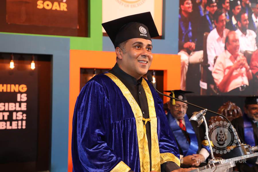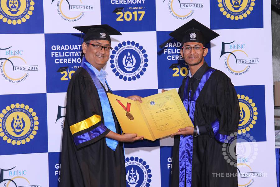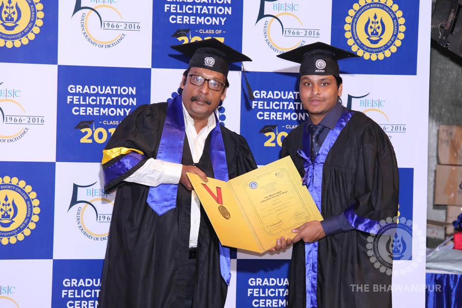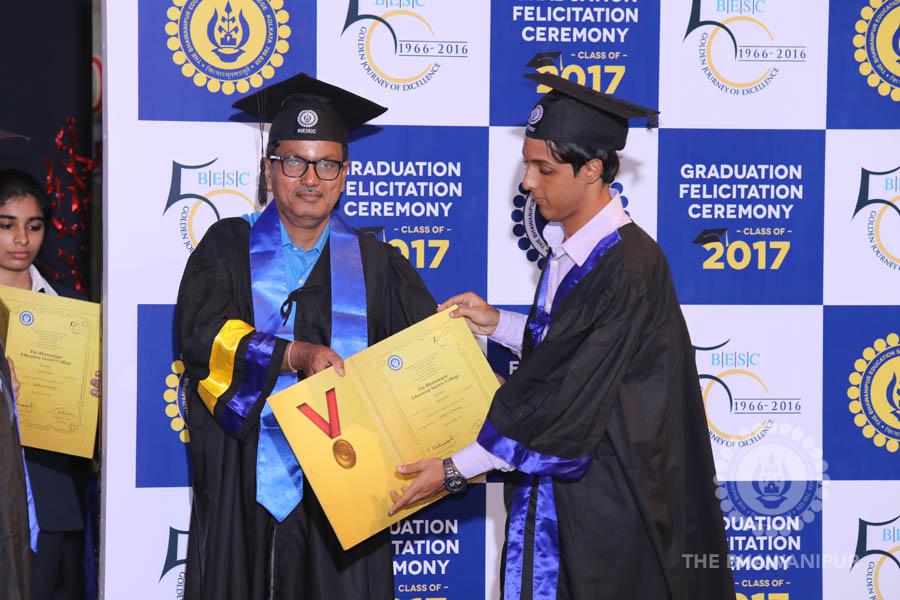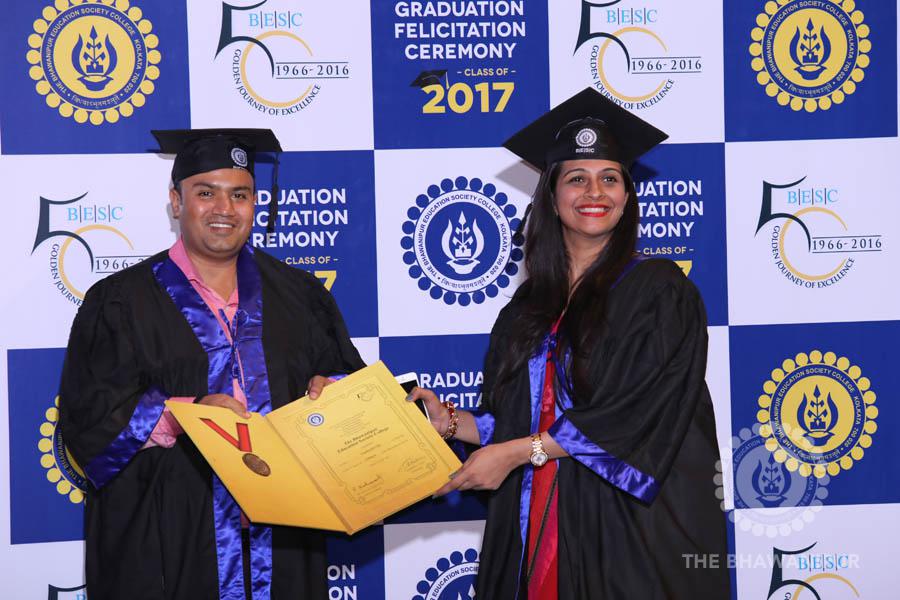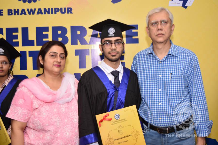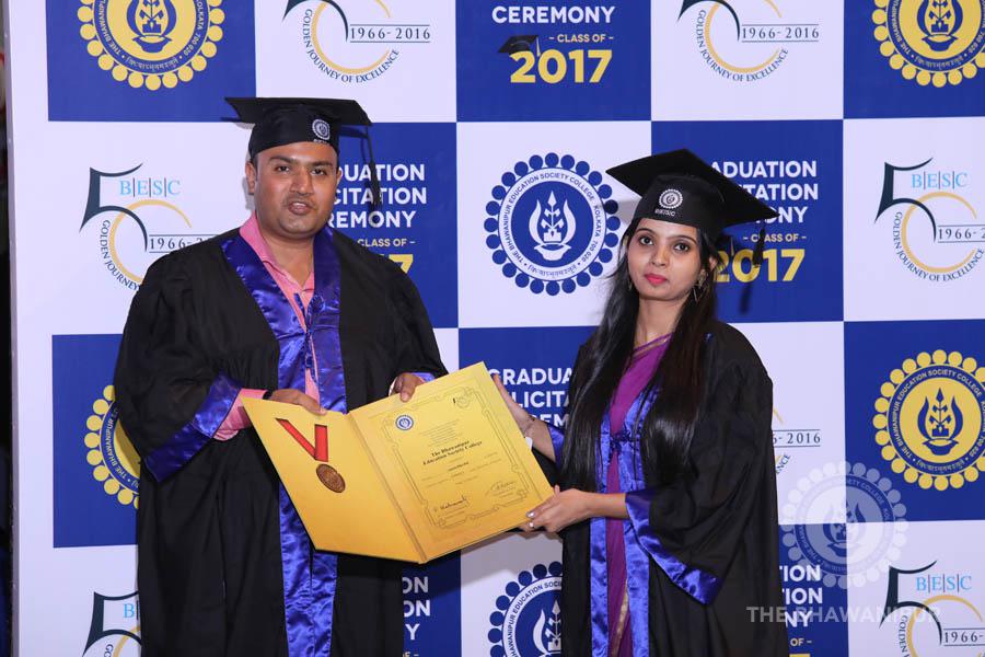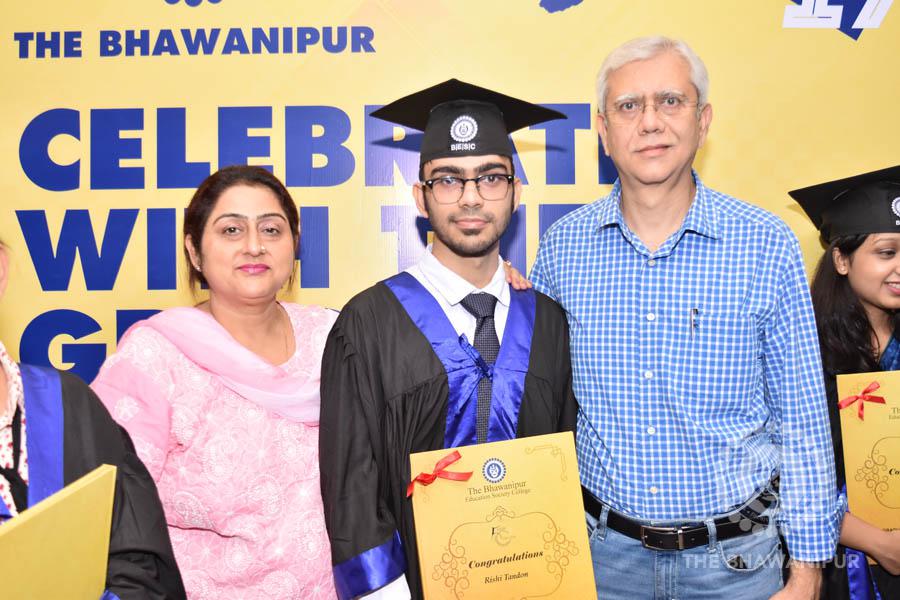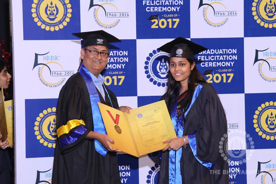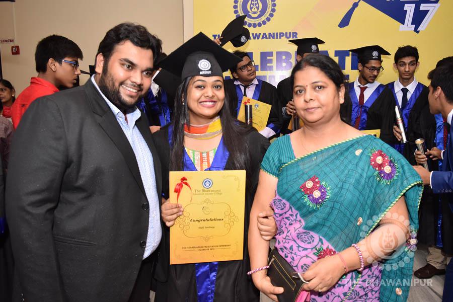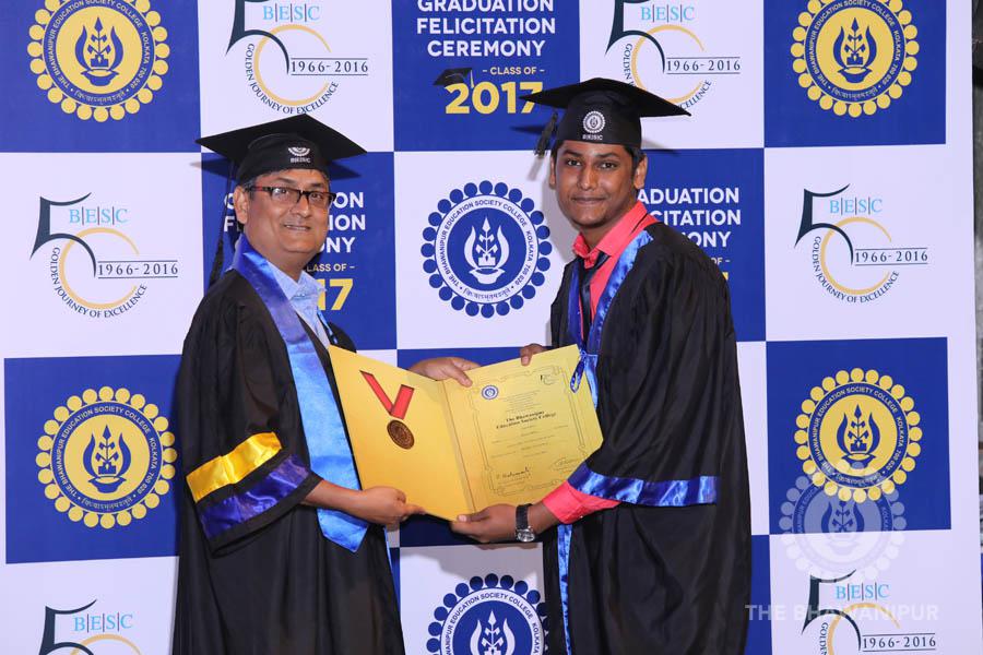 Gurudev Rabindra Nath Tagore’s immortal lines “Where the Mind is without Fear” played in the background as the Convocation procession – comprising of the Chairman of the Bhawanipur Education Society College, Champak Bhai Doshi; the Chief Guest Chetan Bhagat; the Vice Chairman Miraj D Shah; the Director General Prof Suman K Mukherjee; the Dean of Student Affairs Prof Dilip Shah; the Rector; the Teacher in Charge and senior members of the faculty moved on stage in full ceremonial regalia. The Guests were welcomed and the Ceremonial Lamp of Knowledge ignited to formally begin the proceedings of the solemn occasion – the Convocation of the Class of 2017.