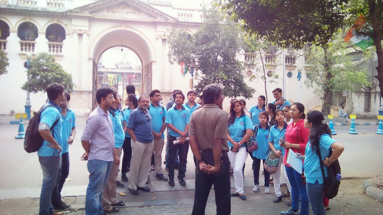 The NSS unit of the college organized a walk which was led by Mr. Rangan Dutta, a historian and heritage enthusiast. This walk was on 25thMarch 2015. It began at 7:15am, where 31 students were accompanied by Prof. Dilip Shah and Prof. Soumendra Laha. It started from Lalit Great Eastern Hotel, which itself is a heritage hotel.At the outset Mr. Dutta was felicitated by Prof. Dilip Shah. During the walk the entire Dalhousie area of the city starting from the northern gate of the Governor’s House and ended at the St. John’s Church was covered.It was then followed by visiting the residences of the junior offices that severed the governor during the Raj. It was interesting to see the two identical building facing each other opposite the Governor’s Palace. We were then led to the first insurances company which provided life cover to the Britishers. The Standard Life Assurance Company, the building is now occupied by the audit firms. The group moved to Central telegraph office also known as the Dead letter Office. We were then taken to the Tank Square, now called the BBD Bag .the place is surrounded by GPO, RBI, etc. making it look like a British square. We then visited a Scottish church, St.Andrew’s Church.