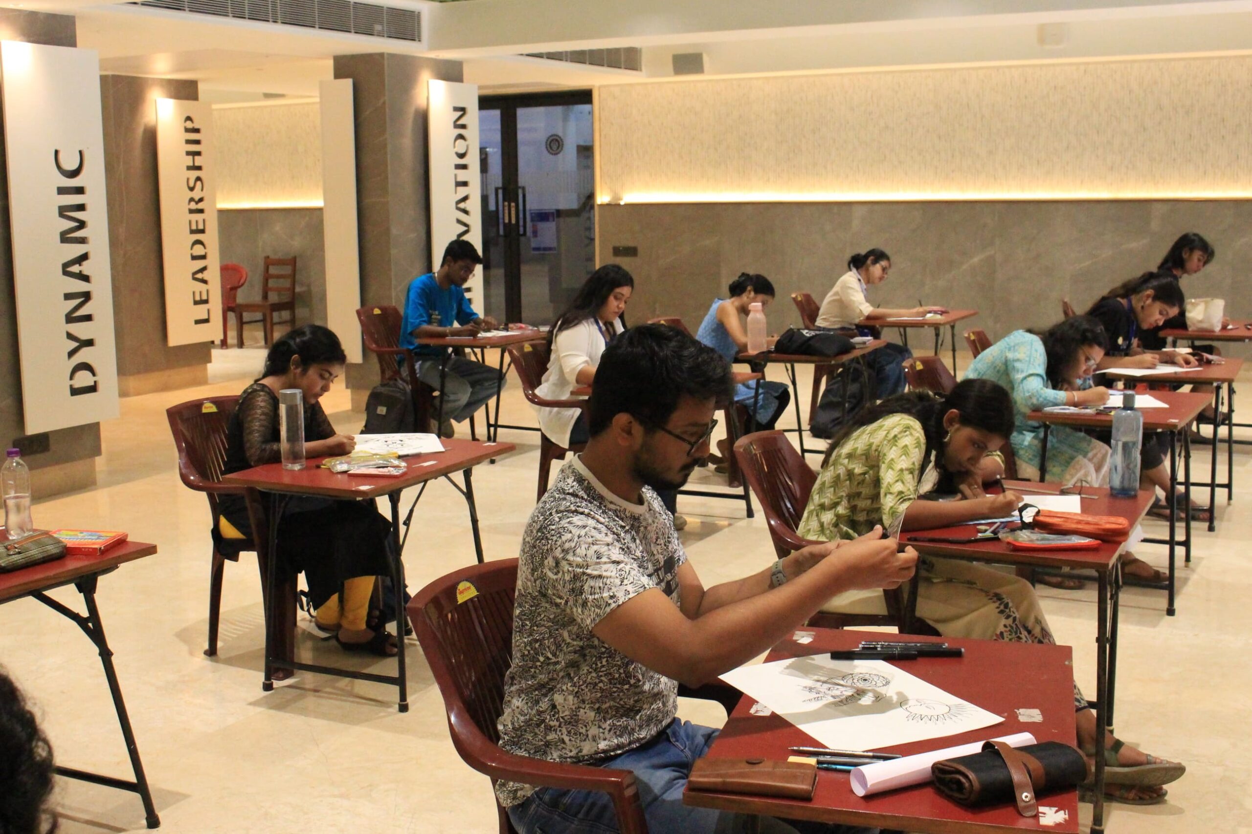 CALLIGRAPHY: Held in Valia Hall from noon, this event was also judged by Mili Mandal. Nine participants competed, writing “Very Bohemian” in their creative fonts on an A1-size mount board within an hour. They used brushes, pens, and colours to craft boho-styled calligraphy.