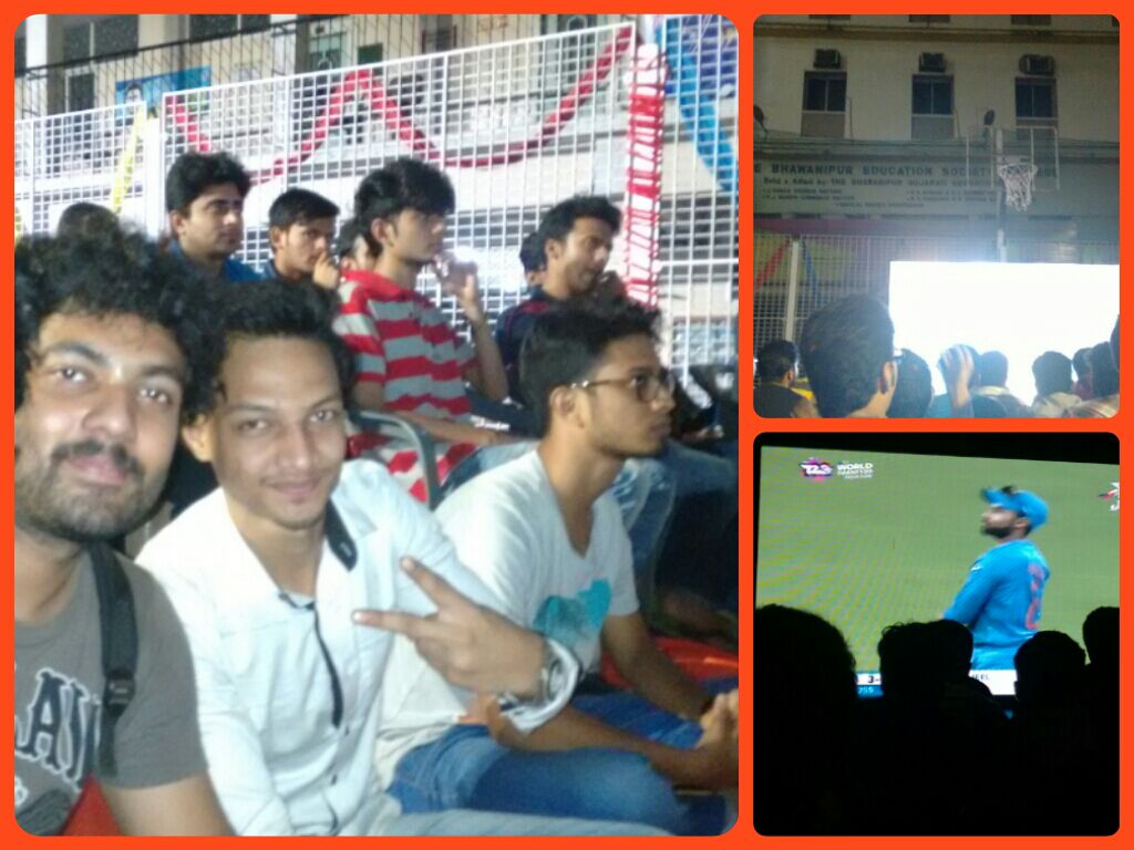 Thunderstorm and heavy showers that lashed the Kolkata city hours before the high-voltage India- Pakistan World Twenty20 clash subsided for an exciting game to be telecasted at the college Turf of the College with about 200 students cheering GO INDIA..!!!