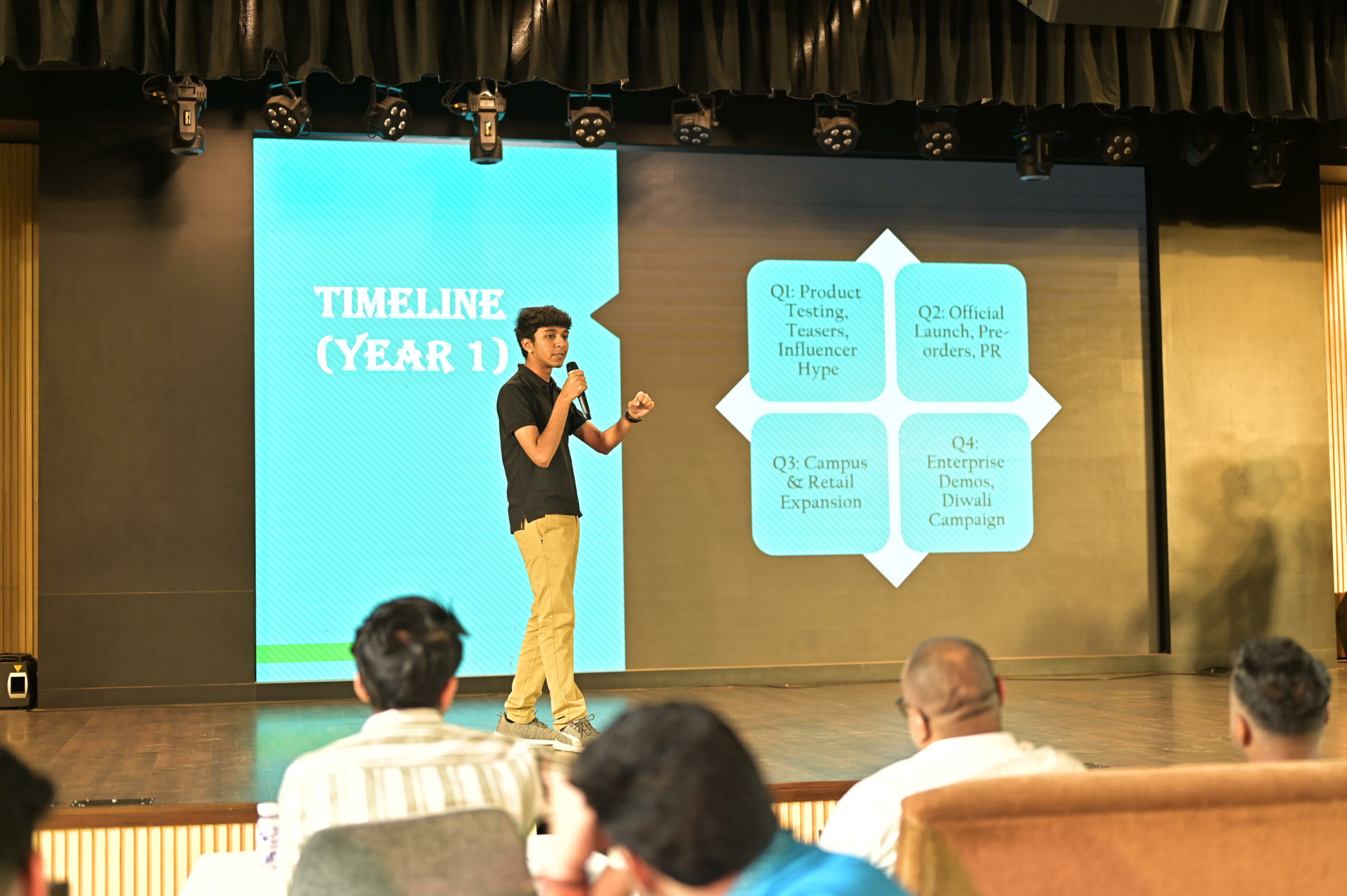 The presentations started one by one, where each presenter, along with their team, was given five minutes to present and one minute to answer the questions of the judges, who asked further details and provided feedback. The presentations included a wide array of problems with equally diverse and unique solutions to them. The many solutions that were presented included customizable idols, cutlery from unburnt waste crop stubble, water solutions, recycling jeans, a healthy food chain, etc. Ideas of all sorts exploded all over the Concept Hall and the judges kept marking each performance based on their visual material, way of presenting, demeanour, overall presence of mind and most importantly, their answers.