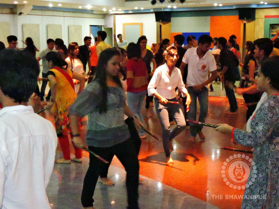 “Two Days. A hundred Students. An instructor who has been there, done the beat. The result – perhaps the most fun workshop of the season! Dhamaal – the pre-Navratri celebrations of the Bhawanipur Education Society College (BESC) was just around the corner, and the workshop was an effort to connect students with the tradition, to help them muster the moves that are aimed at establishing a connect with the divine even as the community welcomes the Goddess to her abode in an ecstatic frenzy of rhythm and dance.