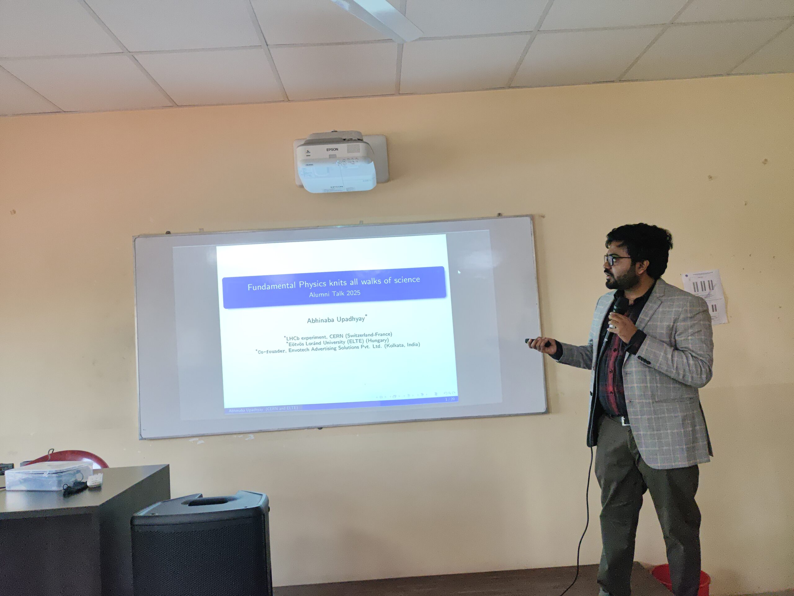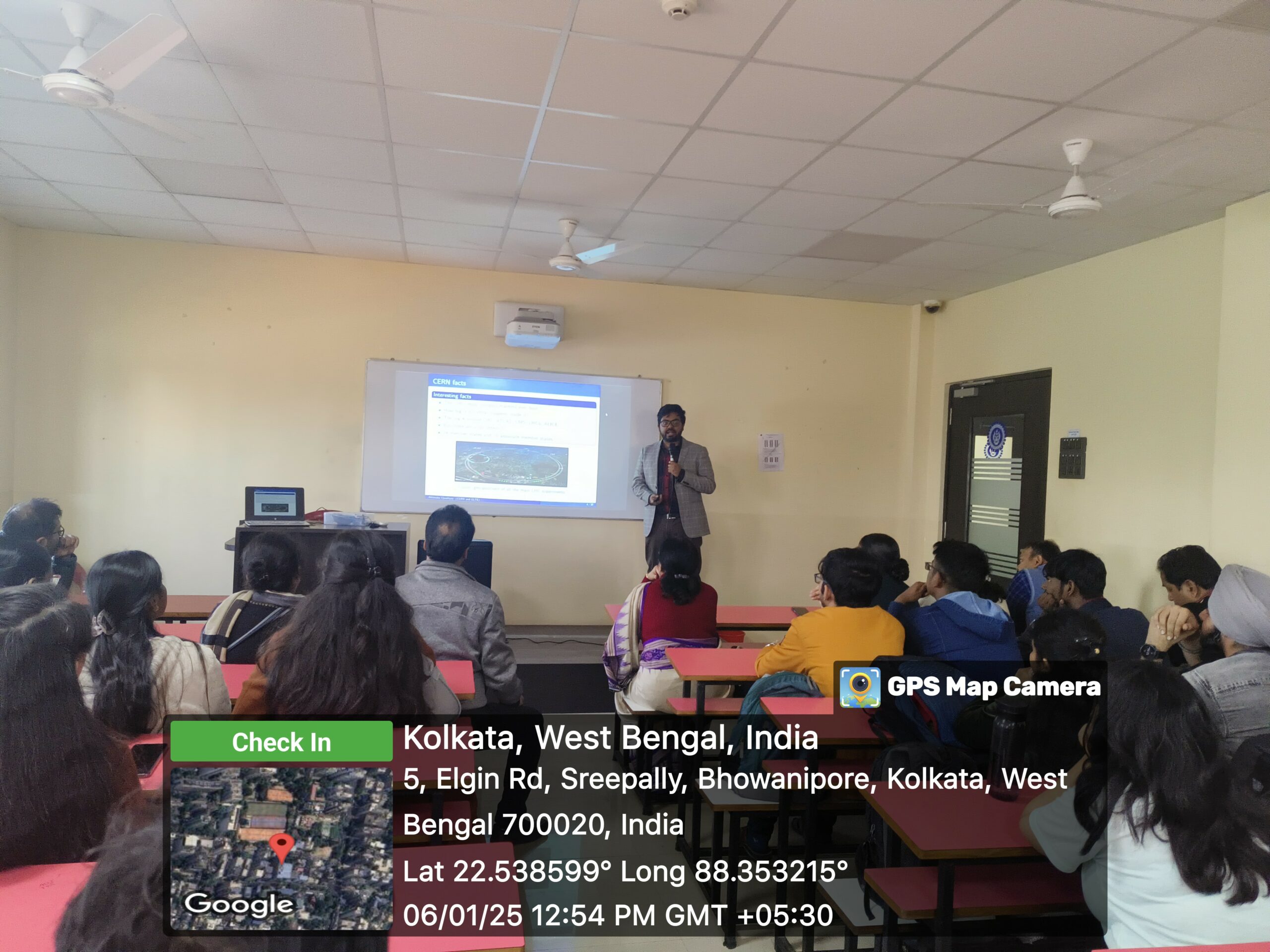 Type of Activity: Alumni Talk Date: 6th January, 2025 Time: 12:15 PM to 1.15 PM Details of Resource persons: Abhinaba Upadhyay, Doctoral Student, CERN, Geneva No. of Participants: 41
