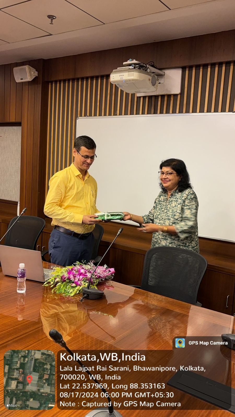 The workshop began with a warm welcome address from Ms. Arundhati Dinesh Mundhra, setting an energetic tone for the session to follow. Prof. Debdutta Sen Faculty of the Department of Commerce (Afternoon & Evening Section) delivered the opening address. Ms. Arundhati Mazumder then introduced Dr. Dhrubashish Sarkar, Principal of the Supreme Institute of Management, Hooghly, emphasizing his extensive expertise in research, teaching, and training. The event reached a notable highlight when Dr. Sarkar was honored by Prof. Atreyee Ganguly, Associate Professor of the Department of Commerce (Afternoon and Evening Section), marking a significant moment of recognition.