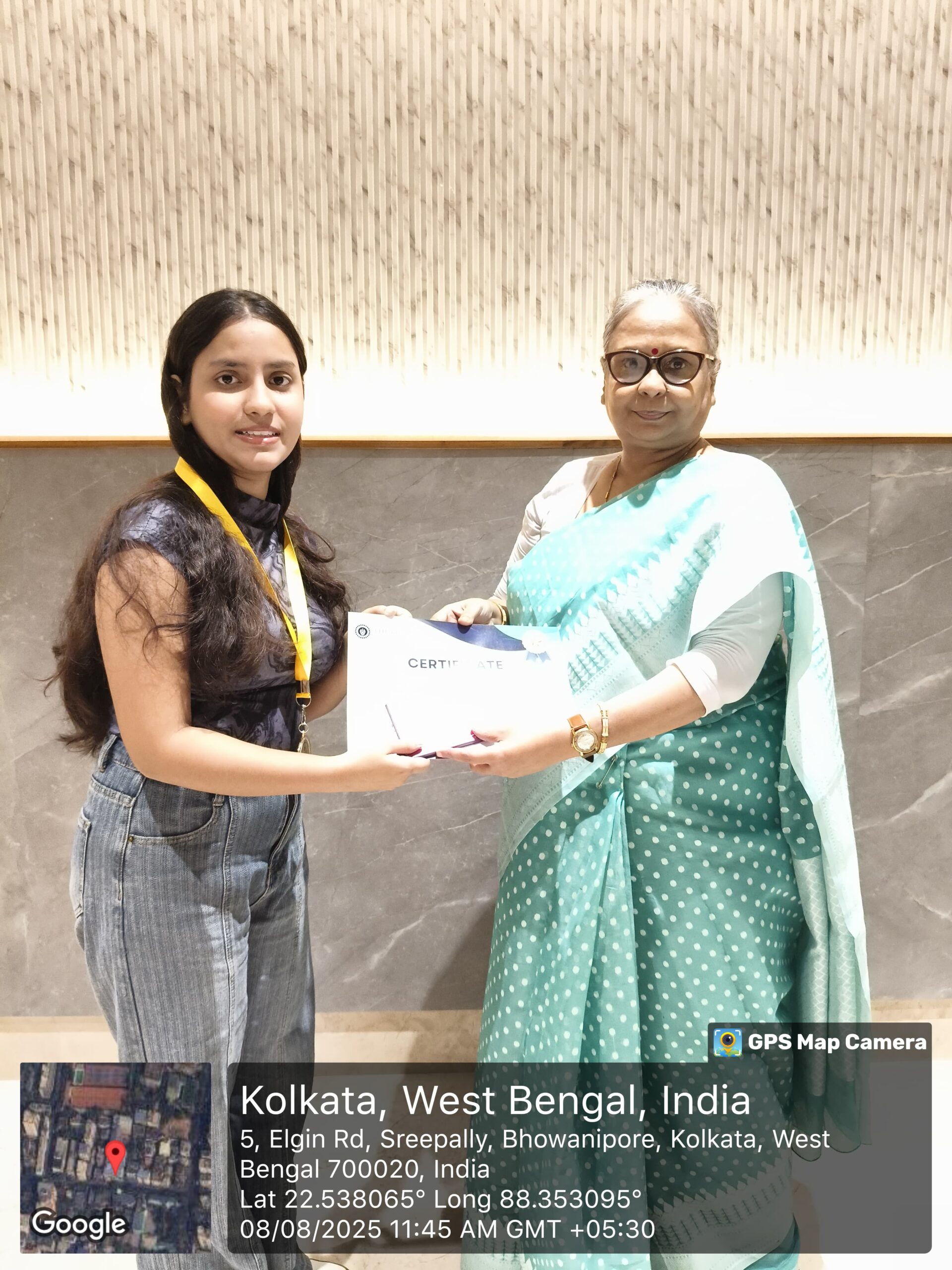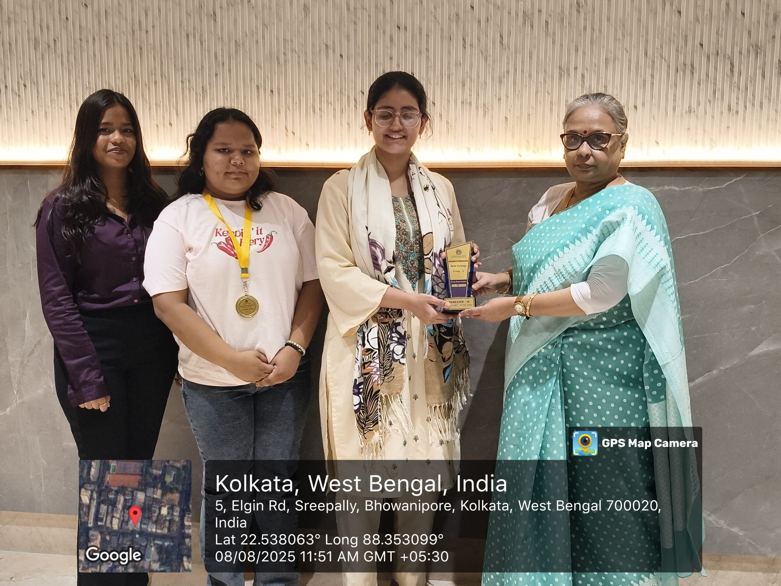 The prize for second highest SGPA in Semester III University of Calcutta Examinations was given to Manashi Agarwal