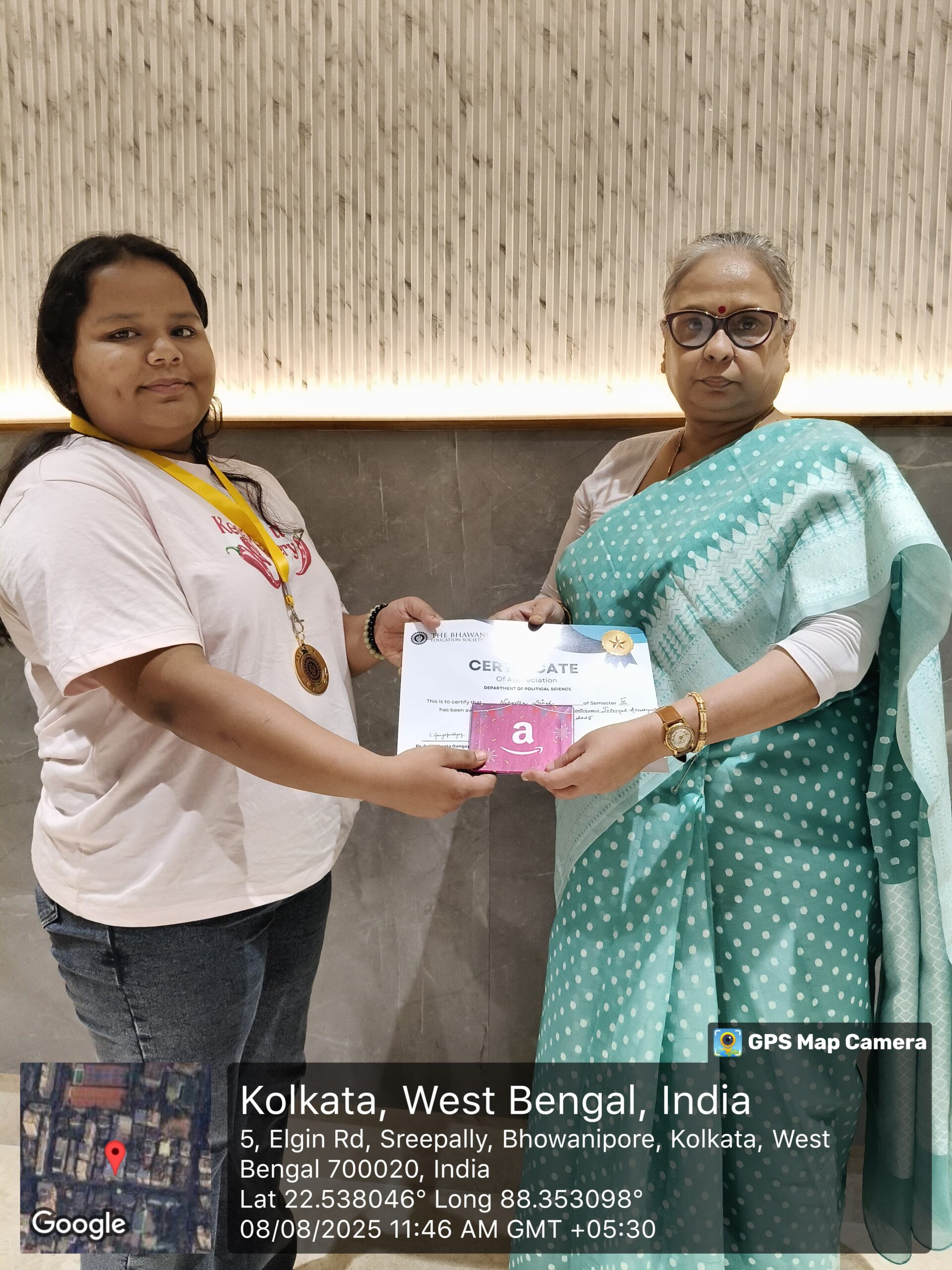 The prize for highest SGPA in Semester III University of Calcutta Examinations were given to Sanukta Roy and Riya Kumari Rao