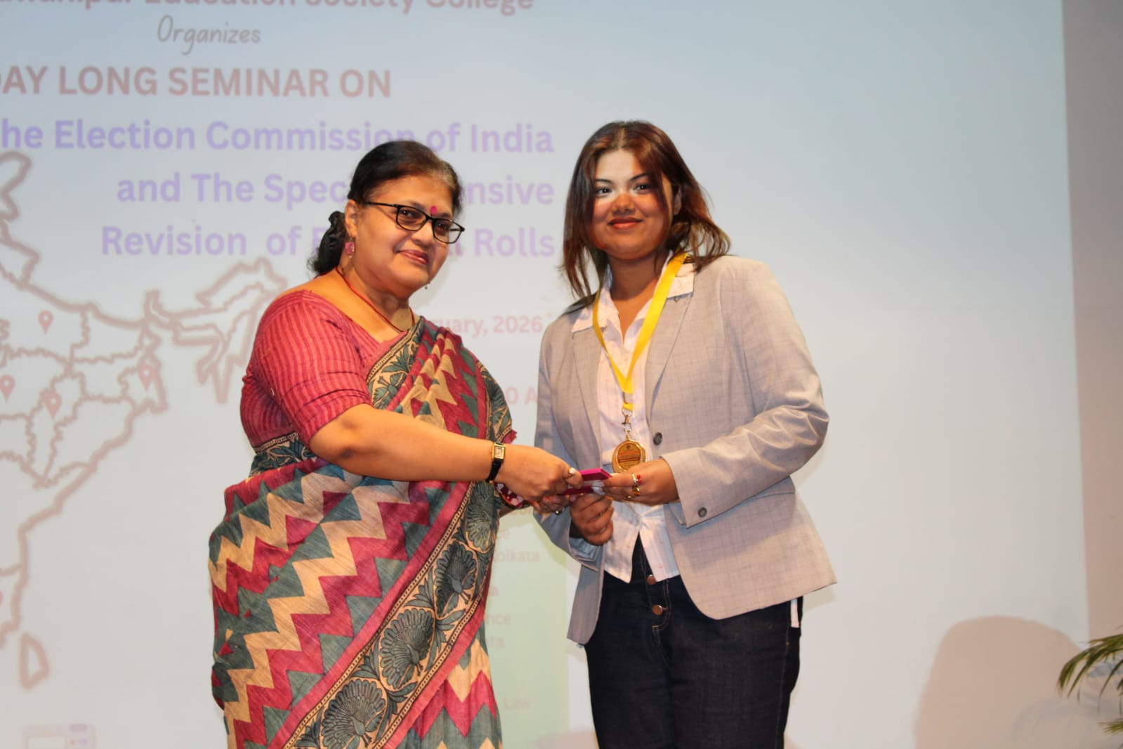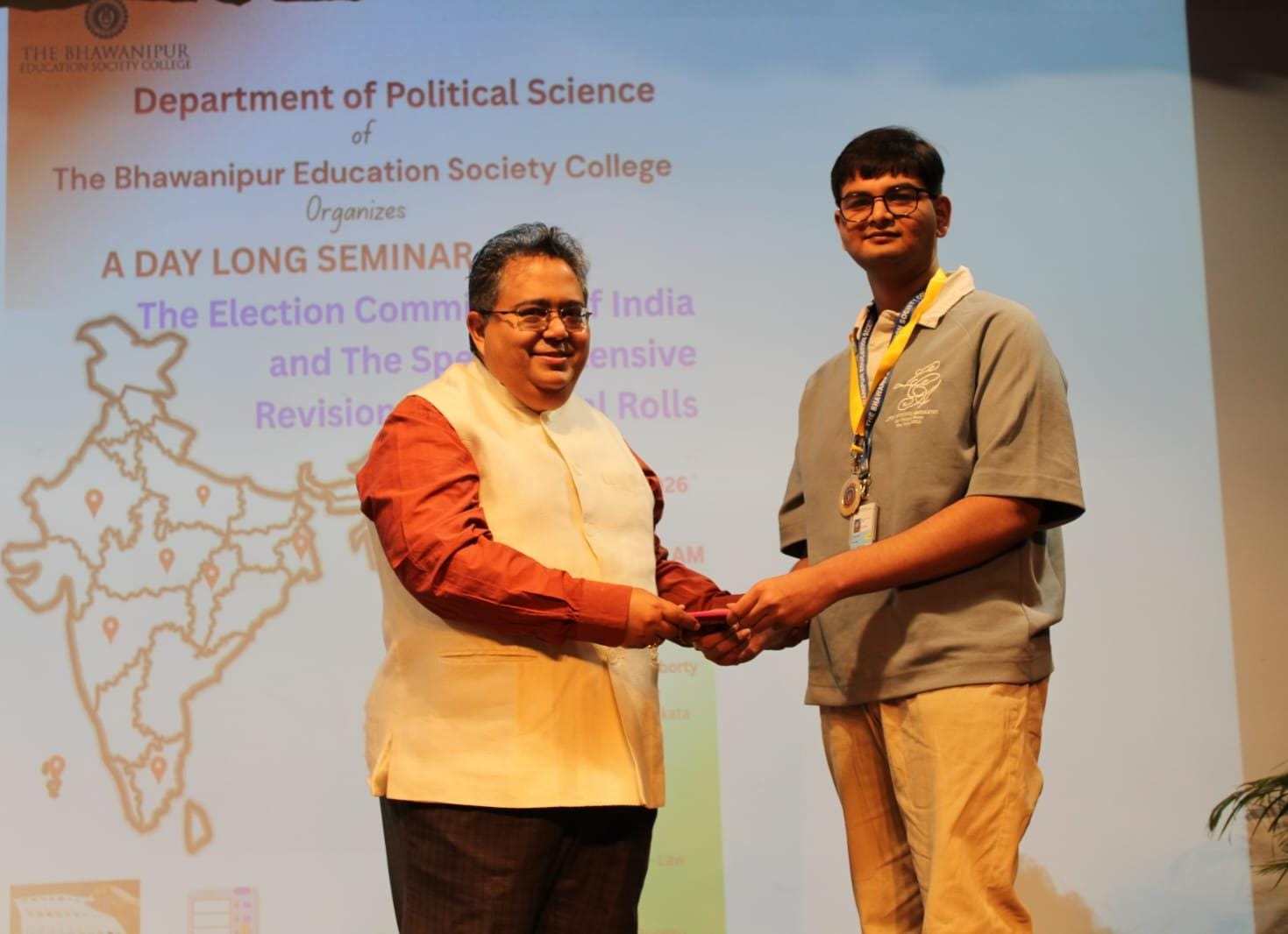 Brief description of the event: The Department of Political Science organised a Prize Distribution Ceremony under Academic and Disciplinary Measures for Semester III Major Students (ADM) on February 7, 2026. The department also organised a seminar on ‘The Role of the Election Commission of India and Special Intensive Revision of Electoral Rolls’on the same day in Jubilee Hall.The proceedings of the prize distribution ceremony commenced with Amala Dhandhania, Associate Professor, Department of Political Science explaining the parameters of the Academic and Disciplinary Measures on which the students were judged and awarded. The Prizes were awarded by distinguished speakers like Dr. Biswanath Chakraborty, Professor, Rabindra Bharati University, Professor Bimal Sankar Nanda, Associate Professor, Charuchandra College,Shree Pramit Kumar Ray, Senior Advocate, Calcutta High Court, Shree Tirthnakar Das, Bureau Chief, Dainik Bhaskar