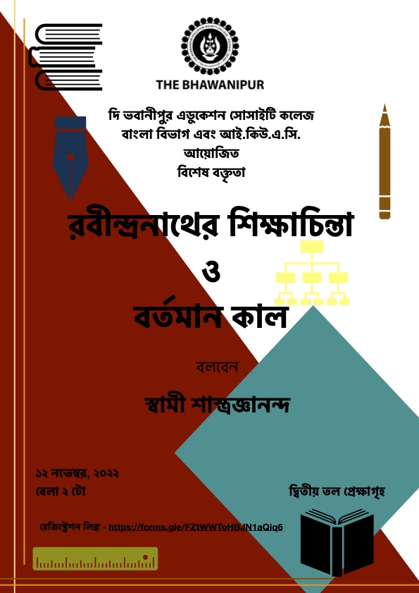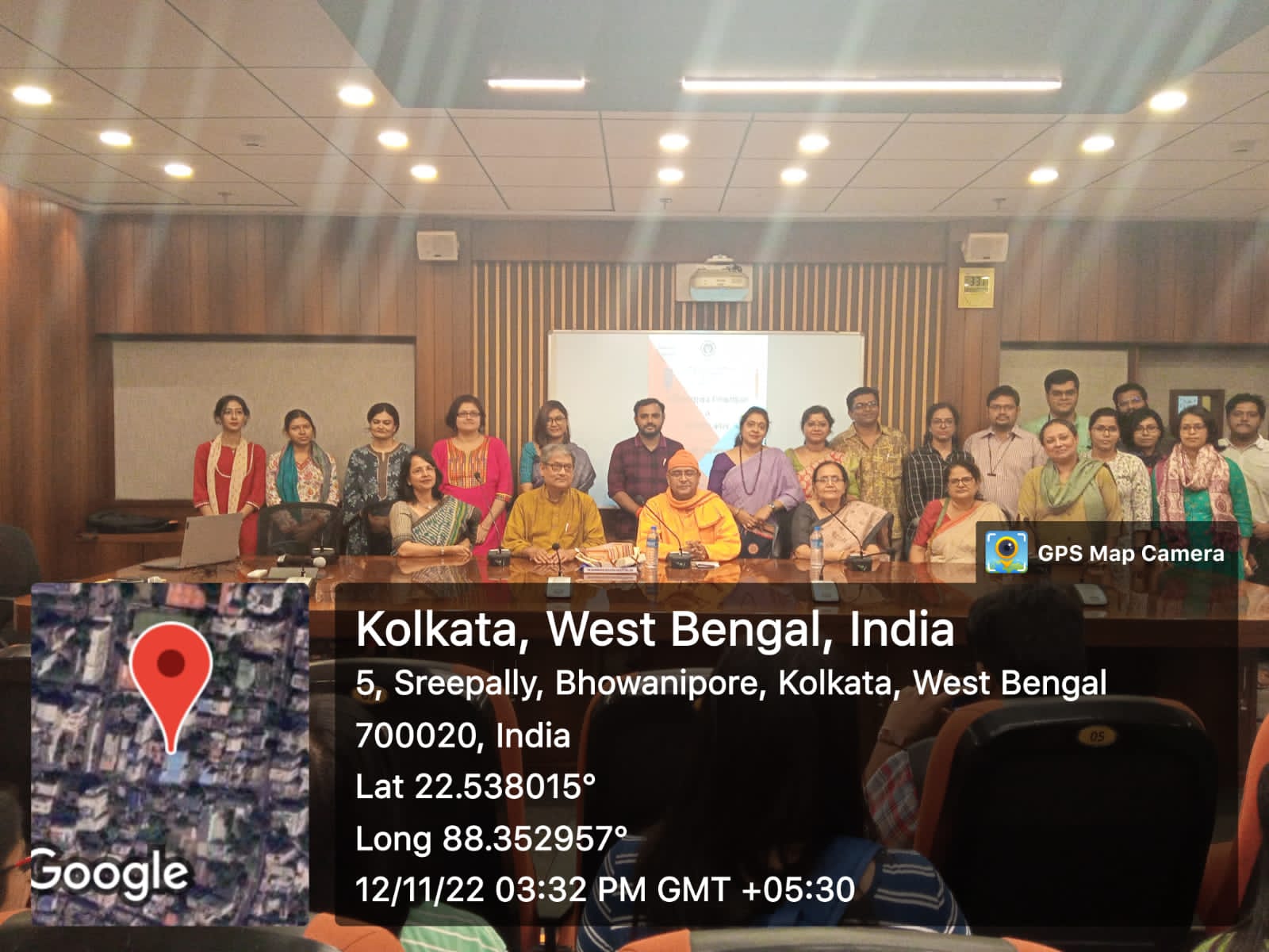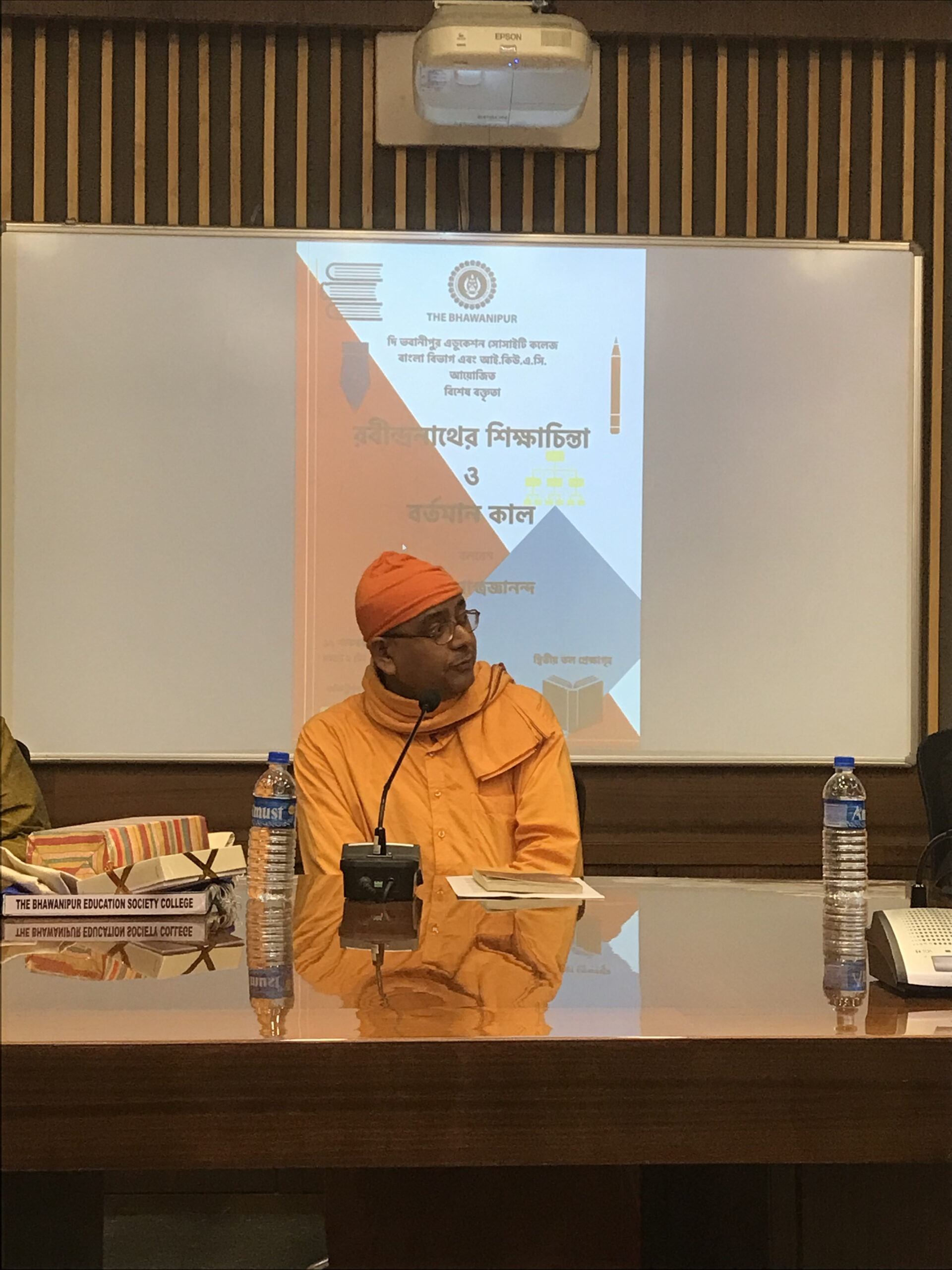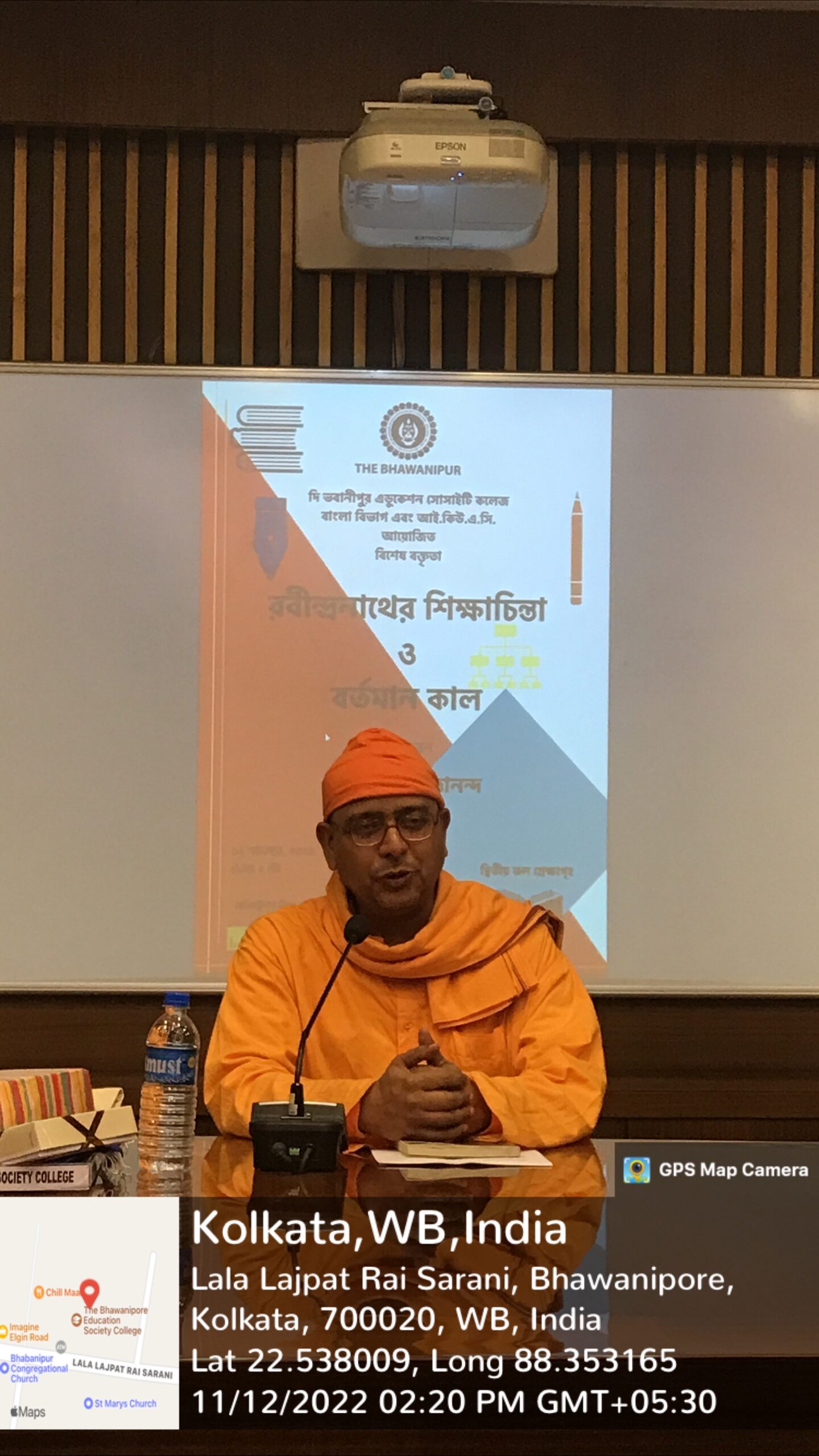 The Department of Bengali in collaboration with IQAC organized a special lecture on Rabindranath er Shikhachinta o Bortomankal, held on 12th November 2022 at 2.00pm. The esteemed speaker of the lecture was Swami Shastrajnanananda (Secretary, Saradapith, Ramkrishna Math o Mission, Belur & Former Principal of Belur Vidyamandir and Narendrapur, Ramakrishna Mission College). The event took place in the second floor auditorium. Swami ji discussed how Rabindranath Tagore practiced and propagated education as a continous learning process. He further explained that Tagore believed that knowledge helps to emancipated mankind from ignorance and lead the civilization towards a higher form of consciousness and moral enlightenment. Swamiji narrated many insightful events related to Tagore’s life as the Vice Chancellor of Vishwabharati, which clearly indicated his liberal and dynamic approach towards value education. Swami ji further explained that there is a huge gap between Tagore’s way of educating the young minds and the contemporary outcome based education system aimed at alienating the young souls from creativity and freedom of deliberations. He concludes his lecture with the remarks that while present education policies are more hard power oriented and mechanical in its approach, on the other hand, Tagore’s philosophy and thinking on education was more inclined towards soft power approach based on literary and cultural ideas and value system. The presence of 25 teachers and 20 students made the program a huge success.