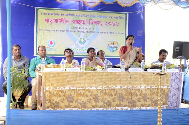 The Chief Guest of the Programme Smt. Rehana Khtun and Dr Parveen Banu, along with NSS Programme Officer Prof. Divyesh Shah, Prof. Kaushik Banerjee, School Administration representative Shri Ratan Mistri, Village Headman and other dignitaries presented their view on this day which is observed as Menstrual Hygiene Day all over the world.