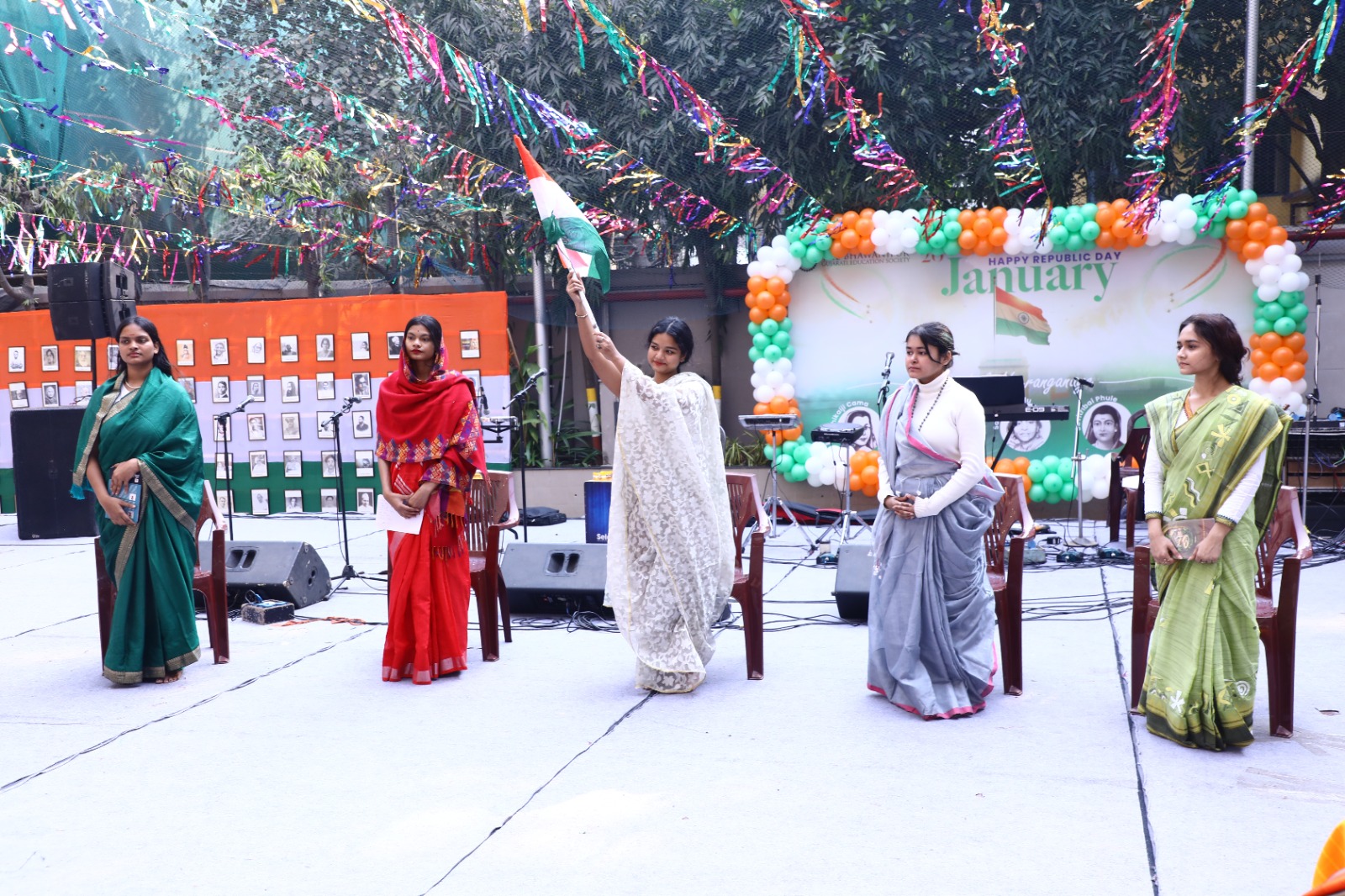 Aligned with the theme Desh ki Veerangana, the students of the Enact Collective presented a compelling performance celebrating the courage and contributions of India’s women warriors. The enactment portrayed five iconic figures—Bhikaiji Cama, Matangini Hazra, Sarojini Naidu, Vijayalakshmi Pandit, and Savitribai Phule—bringing to life their resilience, sacrifice, and unwavering commitment to the nation. Through powerful narration and expressive performances, the presentation paid tribute to the indomitable spirit of Indian womanhood and left the audience deeply moved and inspired.
