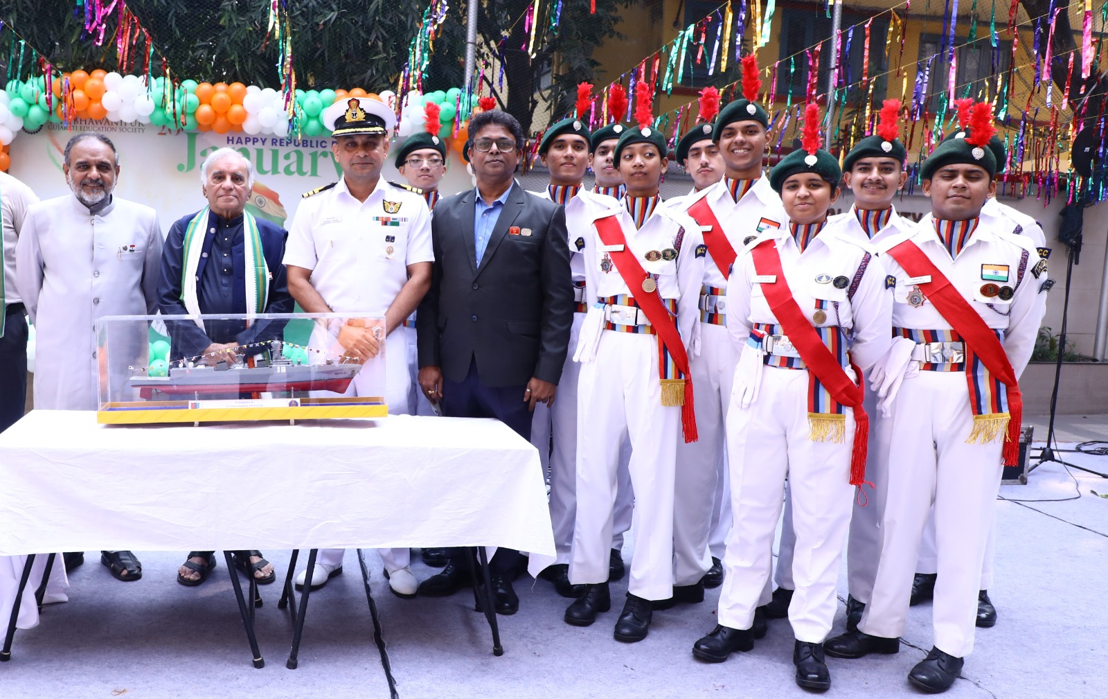 Thereafter, the NCC students showcased a handmade model of the warship INS Imphal, symbolising strength, discipline, and the seamless blend of creativity and commitment. The students of Bhawanipur Gujarati Education Society School then enacted the struggles of our freedom fighters, followed by yet another vibrant dance performance by the students of the Bhawanipur Designing Academy.