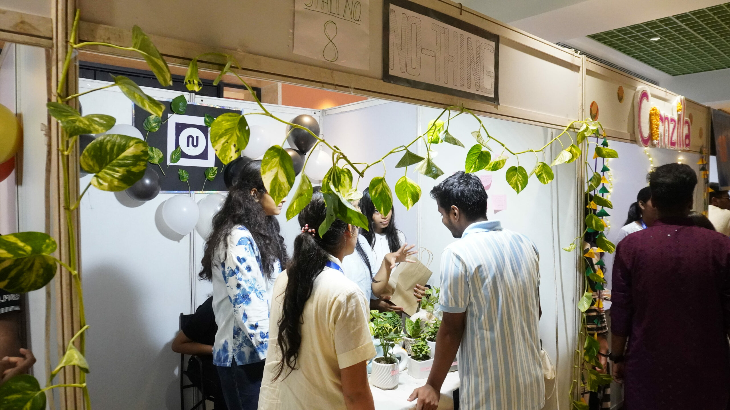 The inaugural Session was organized in Jubilee Hall and was inaugurated by Rector and Dean, Prof. Dilip Shah, Mr. Inderbir Singh Bhandari, along with Course Coordinator Dr. Tridib Sengupta. It began with a cultural performance by Ayushi Mahanty, student of the second year of BBA Department followed by an inspiring speech by Prof. Dilip Shah. The Emcee thanked the sponsors of the event after which Dr. Tridib Sengupta delivered a vote of thanks. He then invited all the dignitaries on stage who formally declared the commencement of the event. All Dignitaries, students and teachers proceeded to the Valia Hall for the ribbon cutting to open the Hall for visitors and guests.The fair featured 14 unique stalls, each presenting original, out-of-the-box ideas. These ventures ranged from technological concepts, such as the book-reading app model Pushtak, to creative products like the crochet stall Knots n Notes, and food items like the protein-packed Tehelka Kulfi made of whey protein to futuristic concepts like Ai-nstein’s Corner and an infrared enabled counting machine Numera to name a few. The event successfully drew a footfall of over 1400 visitors, fostering a highly interactive atmosphere of salesmanship and live marketing.