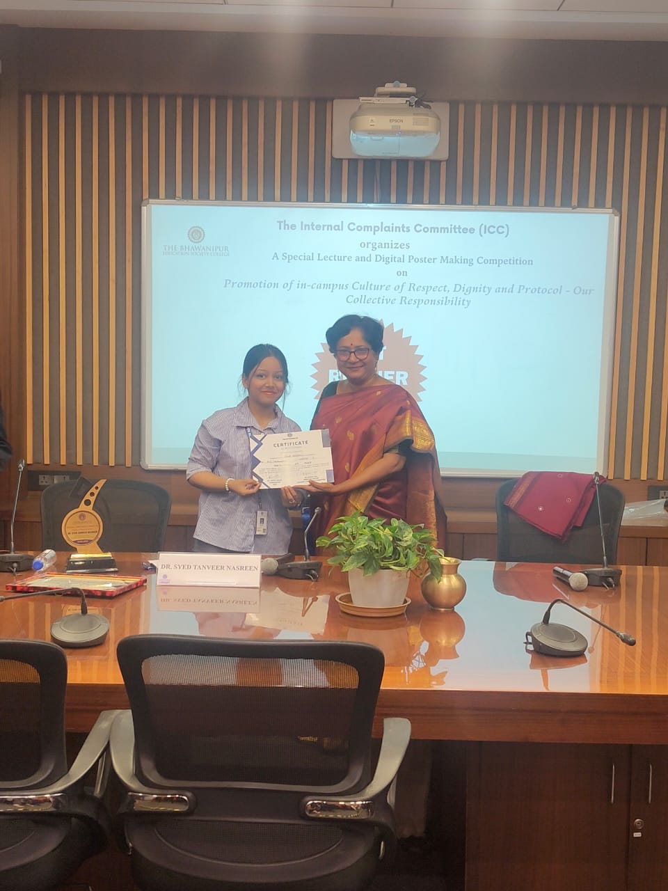 Name of the Activity: Special Lecture & Digital Poster Making Competition on Promotion of In-Campus Culture of Respect, Dignity and Protocol – Our Collective Responsibility Organising Department/Committee: Internal Complaints Committee (ICC) Type of Activity: Special Lecture Date/ Duration of Activity (from-to): 10th January 2026 Time: 10.30am-2.00pm Details of Resource persons (Name, Designation, Affiliation, Area of Specialisation, etc): Dr. Syed Tanveer Nasreen, Professor & Head, Department of History, University of Burdwan. No. of Participants: 8 teachers and staffs, 32 students