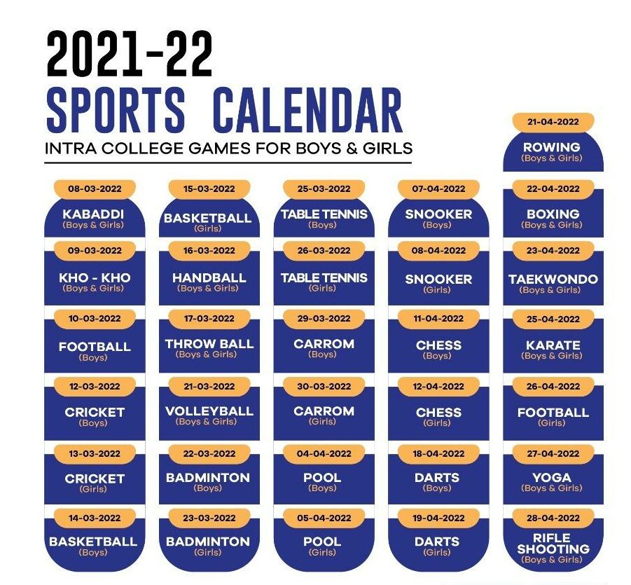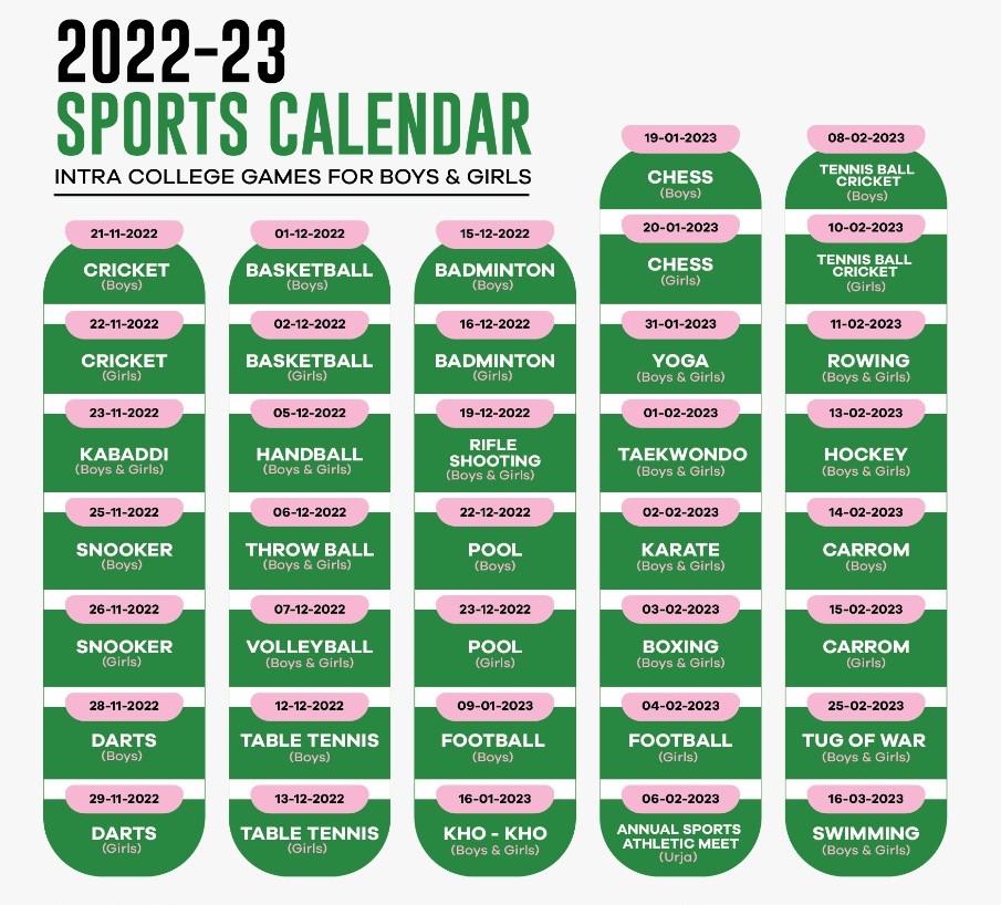 The competition date for any of the above mentioned intra college (boys & girls) games may be changed, if necessary, under unavoidable circumstances.
