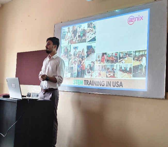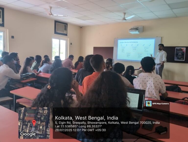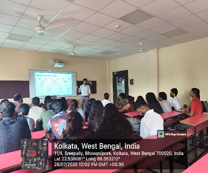 The session featured Mr. Arijit Das, Co-Founder and Director of Aeonix Research & Innovations LLP, as the esteemed guest speaker. Mr. Das, an experienced entrepreneur and industry-level expert, shared his extensive knowledge of IoT and its practical implementations in sectors such as manufacturing, healthcare, logistics, and smart infrastructure. His talk highlighted how IoT technologies are reshaping traditional business processes through automation, real-time analytics, and intelligent decision-making systems.