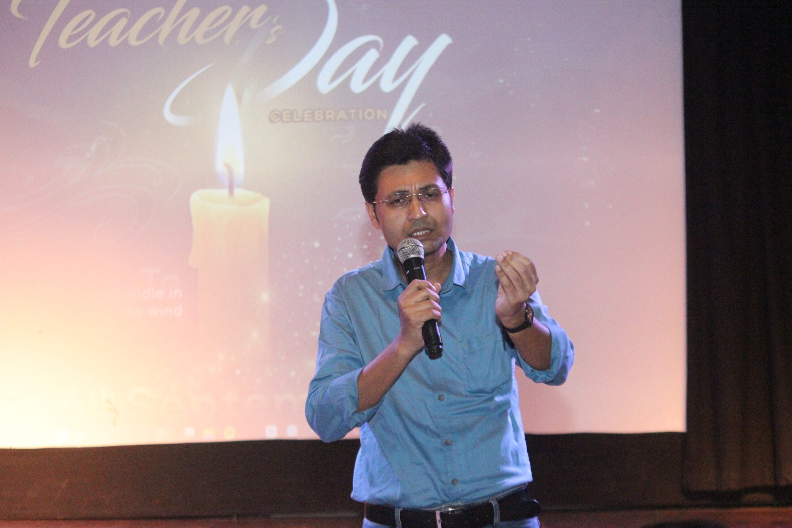 The Rector and Dean of Students’ Affairs, Prof. Dilip Shah, addressed the house with Teachers’ Day greetings. He then explained how he derived the theme for Teachers’ Day 2025 at BESC, “Candle in the Wind.” The wind acts as the enemy of the candle, trying to douse the flame, but the candle bravely withstands hardships and keeps lighting the path. Similarly, a teacher faces difficulties such as last-minute paper corrections, preparing numerous study materials, and occasionally handling students’ misbehaviour, yet they continue to fulfil their duty of educating young leaders, thereby educating the nation. Students come in as lumps of clay, and it is the teachers who shape them. Prof. Shah concluded his speech with the lines: “Fanus banke jiski hifazat hawa kare, woh shama kya bujhe jisse raksha Khuda kare.”