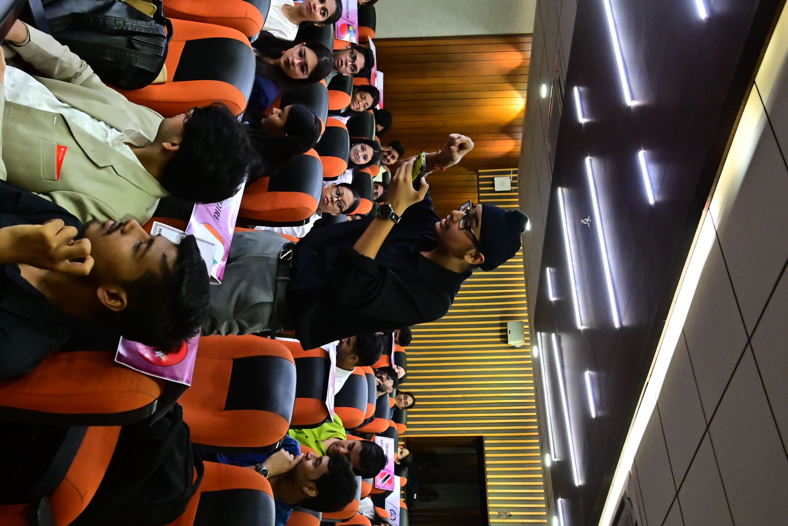 Then, the Executive Board members honoured winning delegates from each committee. The room buzzed with excitement as everyone awaited the announcements, leading to cheers, and some were already looking forward to next year’s AON. As prizes were given out and the air of excitement settled, the night shifted to a more relaxed atmosphere. The valedictory ceremony featured closing speeches from the Secretary General, the ex-Secretary General, and a few EB members, officially ending AON 2025. The day ended with a Ballroom Night where delegates and volunteers enjoyed themselves, dressed in black and red. Before parting off, everyone filled their hearts and stomachs with a gala dinner buffet, wrapping up another successful AON edition.