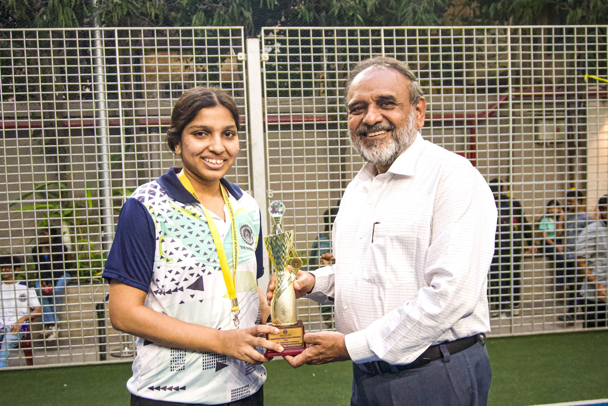 Following the conclusion of the matches, Prof. Dilip Shah stepped onto the pitch for the award distribution ceremony, and the finalists from both the men’s and women’s divisions were invited to the turf. He handed over the medals and trophies to each team — a champion’s trophy and a finalist’s trophy.