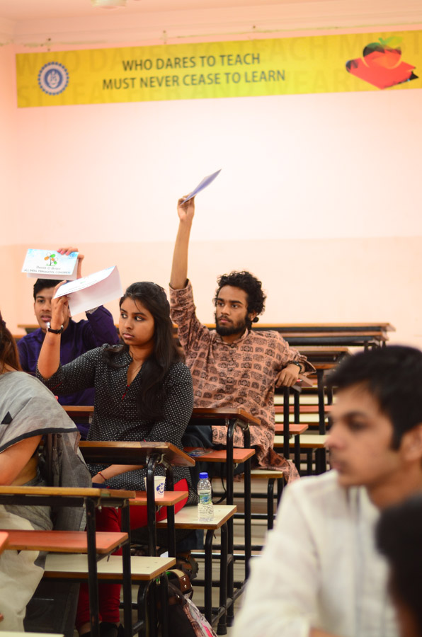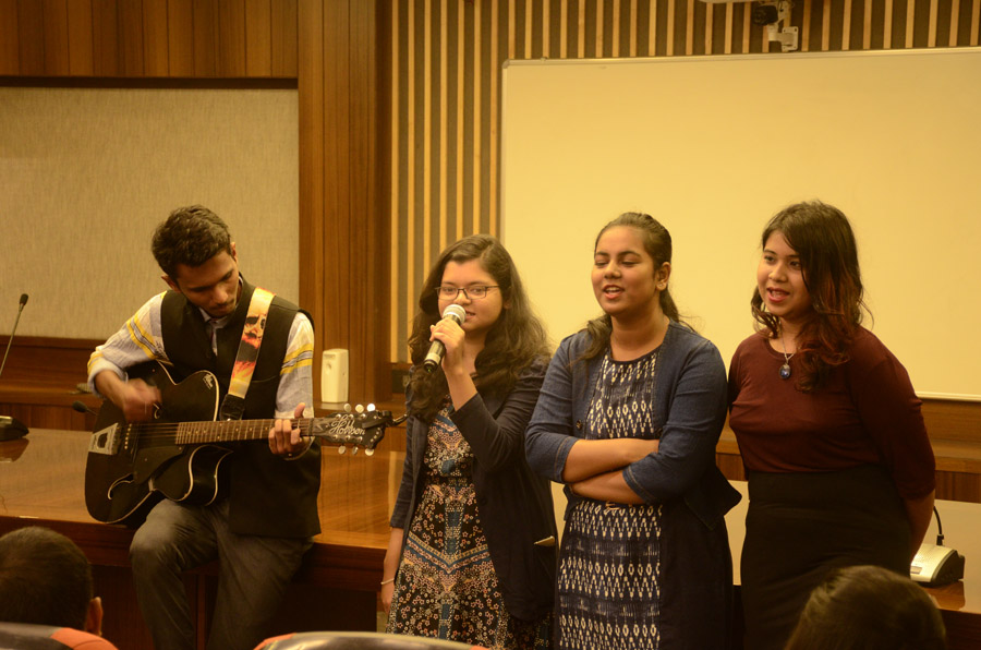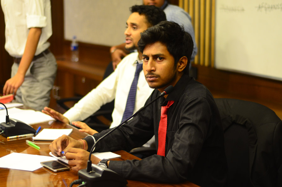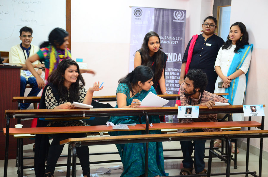 The 2nd intra college Model United Nations (MUN) – christened the Assembly of Nations (AoN) by BESC – was held between the 13th & 15th of March in the college premises. Prof Dilip Shah, Dean of Student Affairs inaugurated the proceedings, while Kalicharan Shaw, a 3rd year student of B Com Honours, the Secretary General of AoN formally declared the Session Open. A total of 85 students participated in the proceedings. The inaugural session was marked by the rendering of a Bob Dylan number by members of BESC’s musical collective the Crescendo. Later, a few retro numbers were also reeled out.
