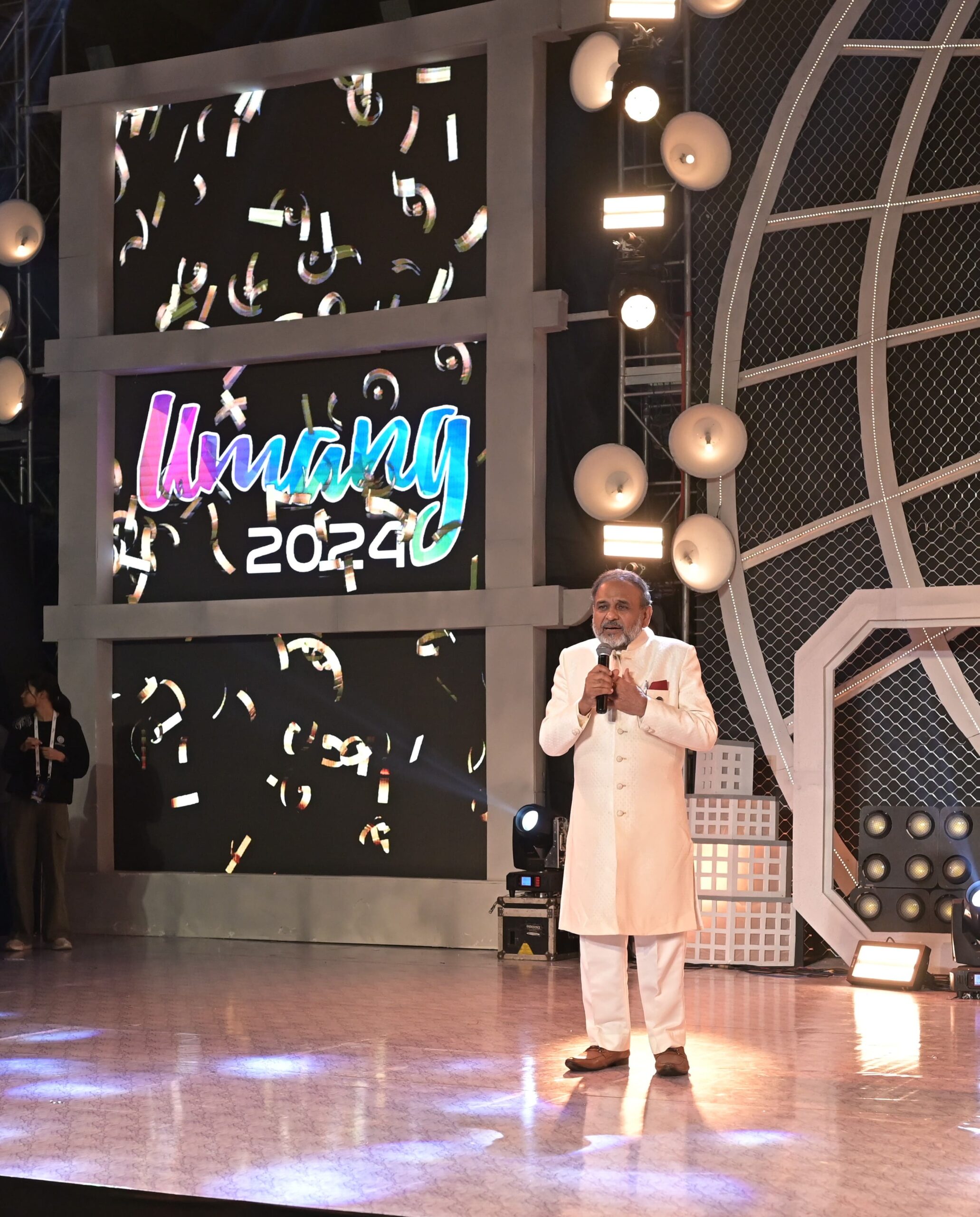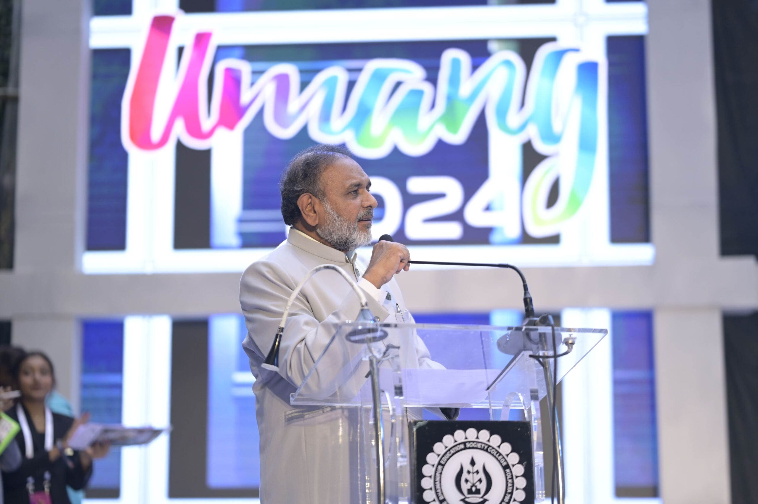 The opening for this grand affair took place through its Inaugural ceremony on Day 1, i.e., December 25, 2024, starting at 4:00 P.M. when the Indian Idol season 13 finalist, Sonakshi Kar, a second-year B.A. student of BESC who performed the song “Satyam Shivam Sundaram” that set an auspicious tone for the ceremony. Next to take the stage was the Classical Dance team of the Flames collective of BESC which presented a 5-minute routine on the Ganesh Vandana followed by the anchor, Srishti Jhunjhunwala who introduced all the Chairpersons of each department of UMANG 2024 by calling them up on the main stage. All the student Chairpersons on stage called up the man behind UMANG, the Rector and Dean of Student Affairs, Prof. Dilip Shah, who cheerfully addressed the crowd. In his address, Prof. Shah spoke about the vision behind this fest, its theme for this year, and the significance of the backdrop. He then called upon the present dignitaries from the governing body of BESC, Chairman, Sri Rajnikant Dani; Mr Pradip Sheth; Late Director General, Dr Suman K Mukherjee; Donor Representative; Mr Jogesh Shah, Mr Umesh Shah as well as Central Committee Nominees, Mrs Nalini Parekh, Mrs Renuka Bhatt to come up on the stage and water the plant kept in front of them as an eco-friendly way to inaugurate UMANG 2024. After this, Shri Rajnikant Dani shared a few of his thoughts and ended by declaring UMANG 2024 open, which cued the UMANG theme song. With the sun setting behind us, the dazzling stage lights became a sight as UMANG 2024 literally made a cracking start.