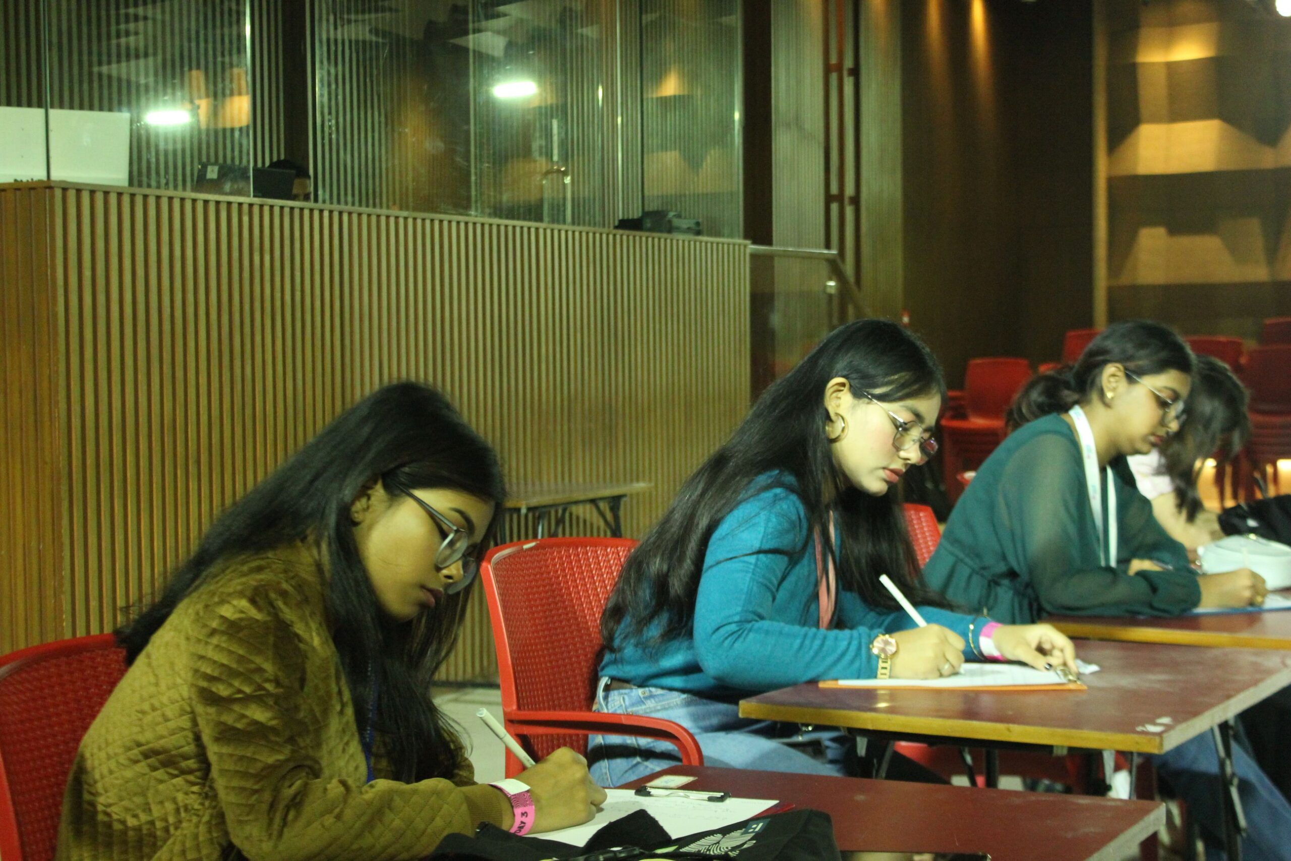 The ‘Fine Arts’ category of this year added new exciting events that catered to the youth populace having an artistic streak particularly those who seek a challenge along with old favourites such as Doodle Art, Caricature Painting, and Lippan Art. Crowned in Colors is a helmet painting competition where the participants use their art supplies to create their dream designs on plain black helmets. Similarly, Icons in Motion was an event where individual participants were provided with 3 random emojis that were to be incorporated into their paintings. Again, Pixel Palette was an event that combined technology and human creativity through the task at hand, where the theme was disclosed on the spot and the participants created awe-inspiring art compositions using their devices and via specialised software such as Ibis Paint and Photoshop