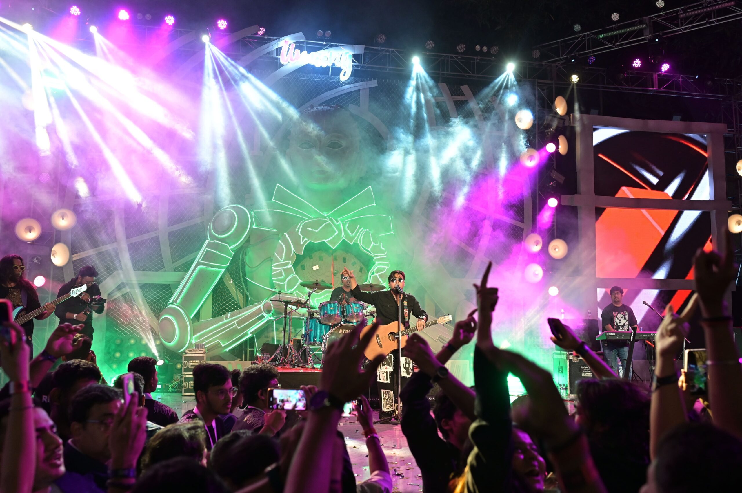 Wrapping up the year with a memorable tale, Kolkata witnessed a larger-than-life version of UMANG, 2024 edition, at the campus of The Bhawanipur Education Society College from December 25, 2024, to December 28, 2024; with 3 events that were a part of the Pre-Umang Event roster taking place on December 22, 2024. An additional celebrity concert featuring the reputed Padmashri Kailash Kher, and the Kailasa band was held on December 29, 2024, at the Netaji Subhash Uddyaan (Northern Park). Since its beginning in 1999, the BESC UMANG has been the talk of the town for many years as it provides numerous events while serving out the best competition for the students of higher education who participate in them. Its reputation for hosting many celebrated personalities under its banner has been acknowledged far and wide; making it one of Eastern India’s biggest student-organized youth fests. Recently, UMANG has become an important occasion for students across various colleges as they work hard towards bagging prizes and ultimately winning the title of “Star of Umang”. This year, particularly, the social media impressions of UMANG 2024 grew to a record of 2.5 million and the fest became the hot spot for the digital world. Keeping up with the tradition, the theme for UMANG 2024 was “AI or I”; one which was thought-provoking and deeply connected to the modern world and its future. The theme brings the increasing dominance of AI in daily routine to our notice and asks us to ponder upon the future relationship between humankind and the AI we created. The theme was skilfully personified through the backdrop of the main stage for UMANG 2024; where a humanoid robot holds its heart inside a human brain, reminding the spectators that even if AI exceeds its limits, it will always have humans at its core. The Art-In-Me Collective of BESC meticulously decorated the entrance corridor, considering the theme at hand and creating a mechanical atmosphere.