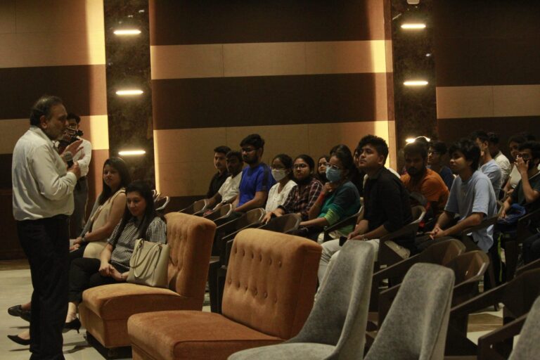 The session was conducted on 4th April 2022, Monday, 12 noon at Jubilee Hall (6th Floor). In the beginning, words of Steve Jobs were being reiterated in, “Design is not what it just looks like and feels like. Design is how it works.” How design works under the binary digits, was directed to the vested group of pupils who filled the space. It was claimed that visual communication is promulgated through graphic designs which include Logo Design, Business Card, Branding and Advertisement and UI Design. Certain aspects were highlighted such as people’s preference of brand name in their material belongings and how logo has flourished in clearly denoting the name of the brand. Mr. Sumontho Banerjee, the speaker of the event brought web designing into discussion. He delineated the steps of buying a product with the help of layout designing by three steps, namely, search, know about the product and purchase the product. On delivering the requisite phenomena vividly, the event concluded.