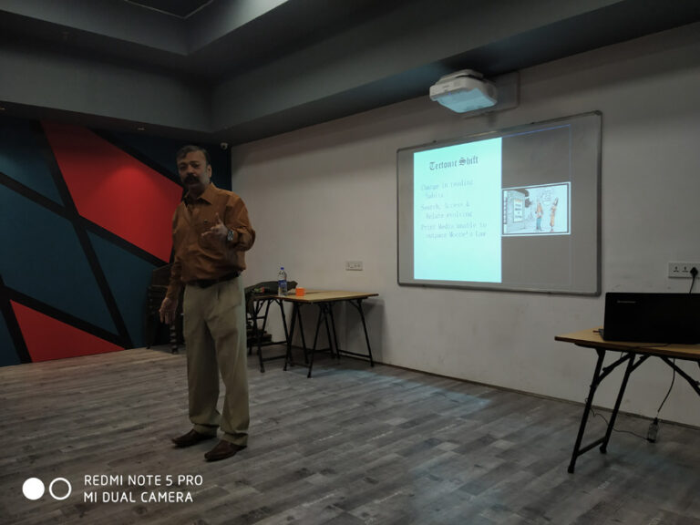 The workshop was a fun learning experience for the students. The speaker was interactive in his deliberations and was open to all sorts of questions and opinions, carrying the audience with him as opposed to overwhelming it with his narrative. Students were introduced to the standard format of a newspaper, various sources of getting the information that finds placer in the media, the hierarchy of reporters in a publishing house, the cardinal rules that have to be followed religiously while writing a report and also dwelled at length on the reasons for the decline of newspapers and the change in our reading habits. The session was followed by a Question and Answer Round where students in the audience asked questions related to the topic and were answered instantly – the speaker delving deep into the pool of his rich and varied experience, often highlighted by anecdotes which made the entire session not only enriching but also extremely enjoyable.