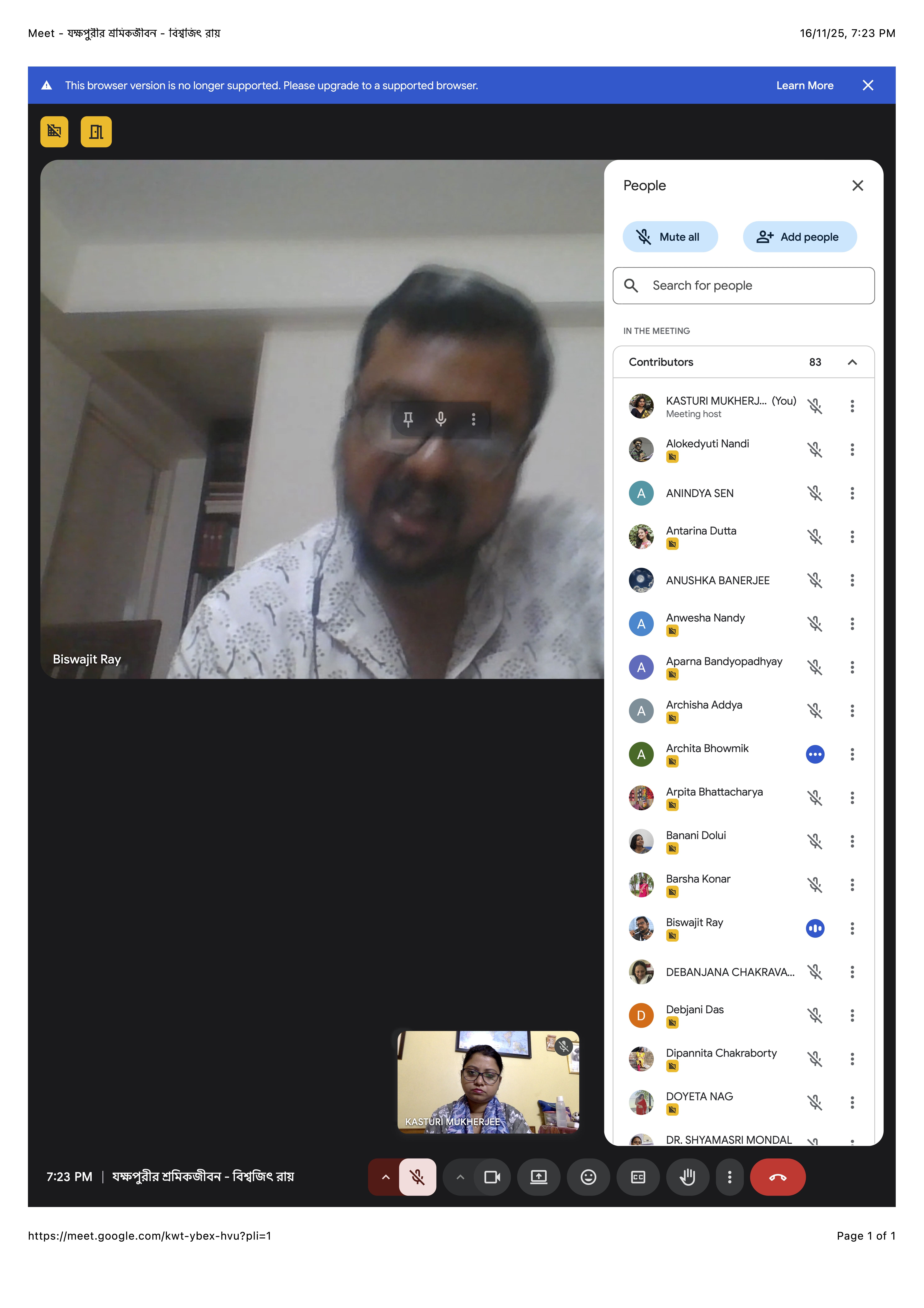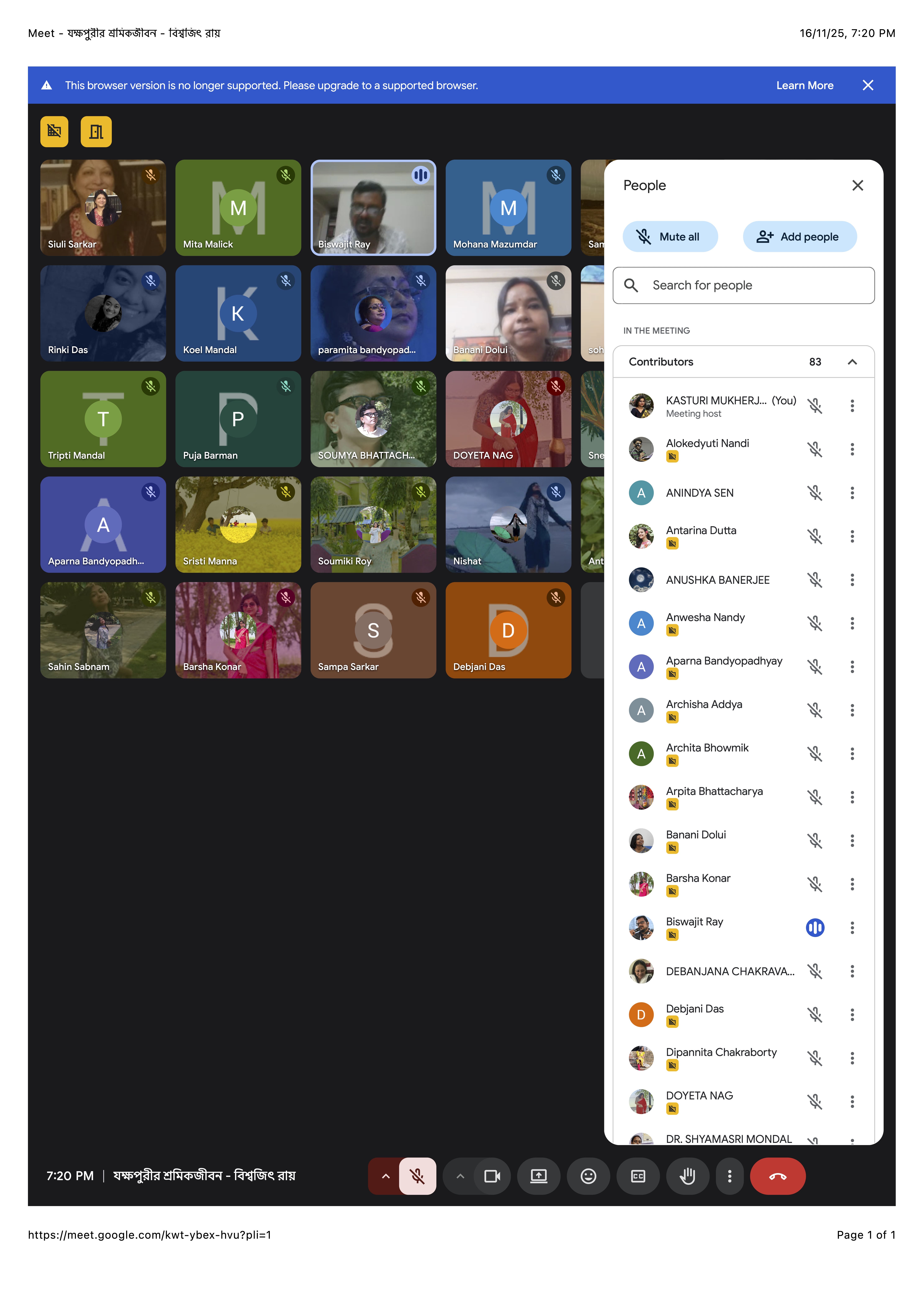 Name of the Activity: Yakshapurir Shramikjibon – Online Lecture Type of Activity: Academic Lecture / Commemorative Online Talk Date/Duration of Activity (from–to): 16 November 2025 (One-day event) Time: 7:00 PM to 9:00 PM Details of Resource Person: Prof. Biswajit Ray – Professor of Bengali, Visva-Bharati No. of Participants: 82 participants